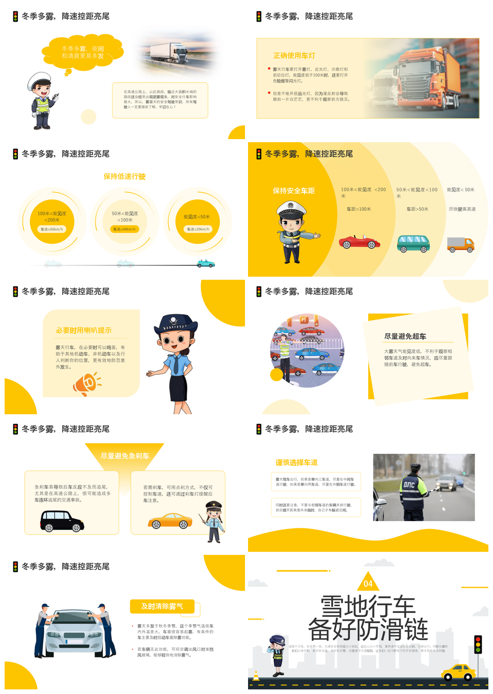 风云办公提供的冬季交通安全教育简约培训PPT模板,下载格式为pptx,一共38页,作品中文字及图均可以修改和编辑,图片更改请在作品中右键图片并更换,文字修改请直接点击文字进行修改。
