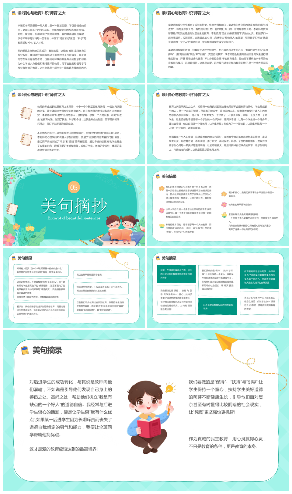 这是一张2025爱心教育可爱卡通绿色读书分享会PPT模板,包含2025、爱心教育、可爱、卡通、绿色、读书分享会等主题内容,也可用作2025爱心教育分享会、爱心教育可爱卡通、可爱卡通绿色读书、爱心教育分享会、绿色读书分享会、2025读书分享会、教育可爱卡通、可爱卡通读书、爱心教育、可爱卡通、绿色读书、读书分享会、2025分享会、教育卡通、卡通绿色等PPT场景使用。 风云办公提供的2025爱心教育可爱卡通绿色读书分享会PPT模板,下载格式为pptx,一共27页,作品中文字及图均可以修改和编辑,图片更改请在作品中右键图片并更换,文字修改请直接点击文字进行修改。
