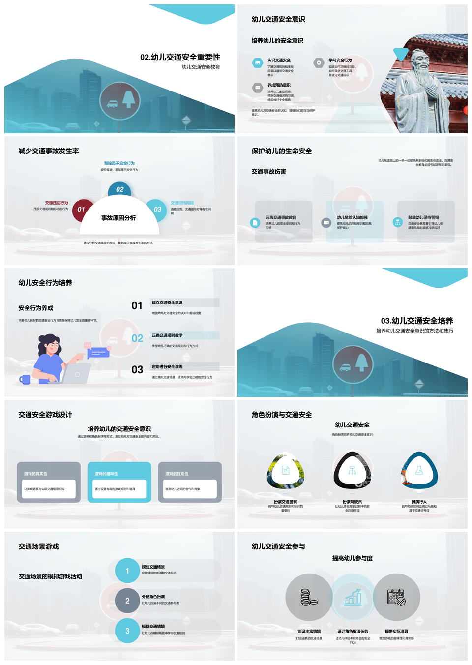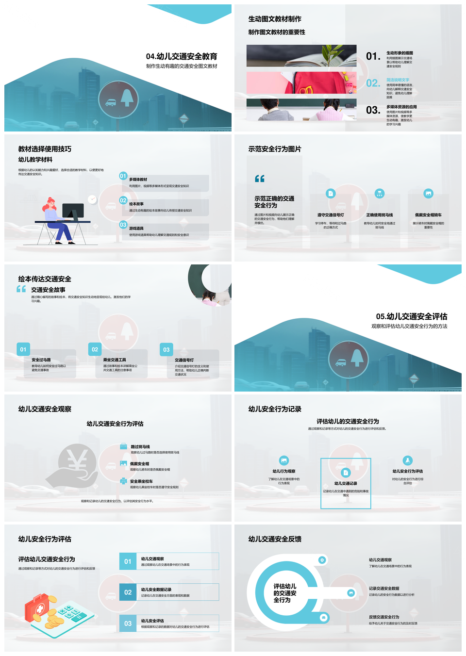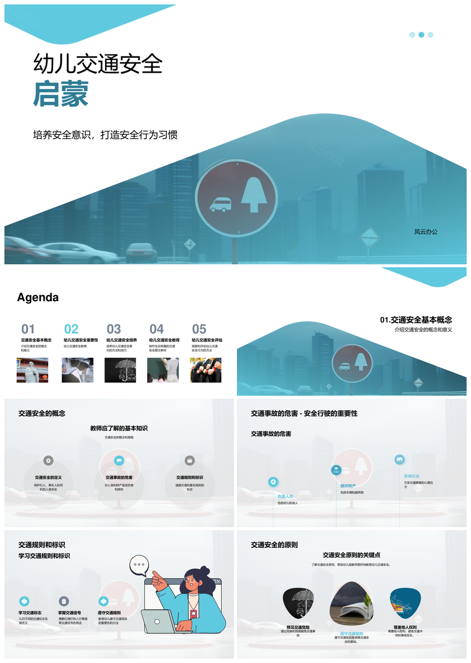这是一张幼儿园交通安全启蒙助力幼儿安全快乐成长PPT模板,包含幼儿园、交通安全、启蒙、助力、幼儿、安全、快乐成长等主题内容,也可用作幼儿园交通安全启蒙助力、交通安全启蒙助力幼儿、安全启蒙助力幼儿安全、启蒙助力幼儿安全快乐、助力幼儿安全快乐成长、幼儿园交通启蒙助力幼儿、交通安全助力幼儿快乐、安全启蒙幼儿快乐成长、幼儿园助力幼儿成长、启蒙幼儿快乐成长、交通安全快乐成长、幼儿园安全快乐、启蒙助力成长、交通幼儿安全、安全快乐成长等PPT场景使用。 风云办公提供的幼儿园交通安全启蒙助力幼儿安全快乐成长PPT模板,下载格式为pptx,一共28页,作品中文字及图均可以修改和编辑,图片更改请在作品中右键图片并更换,文字修改请直接点击文字进行修改。