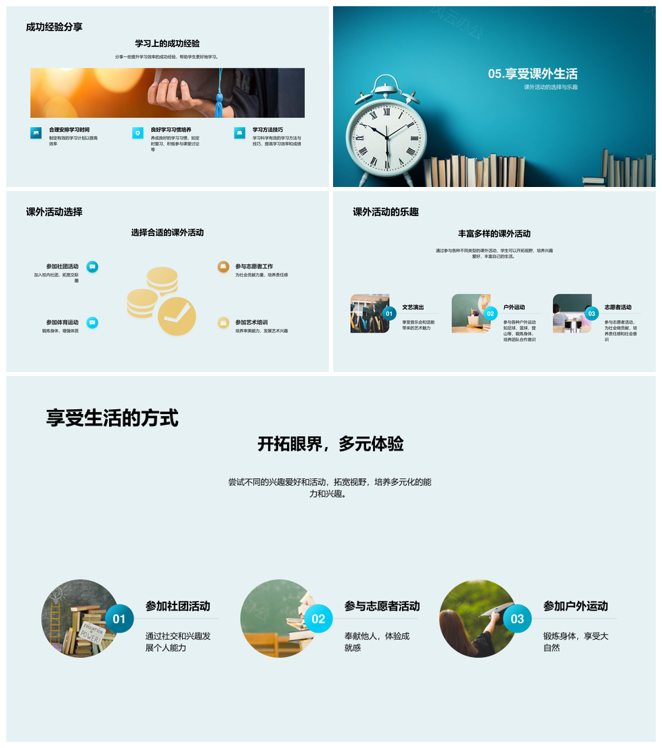 风云办公提供的高效学习与生活平衡艺术PPT模板,下载格式为pptx,一共23页,作品中文字及图均可以修改和编辑,图片更改请在作品中右键图片并更换,文字修改请直接点击文字进行修改。