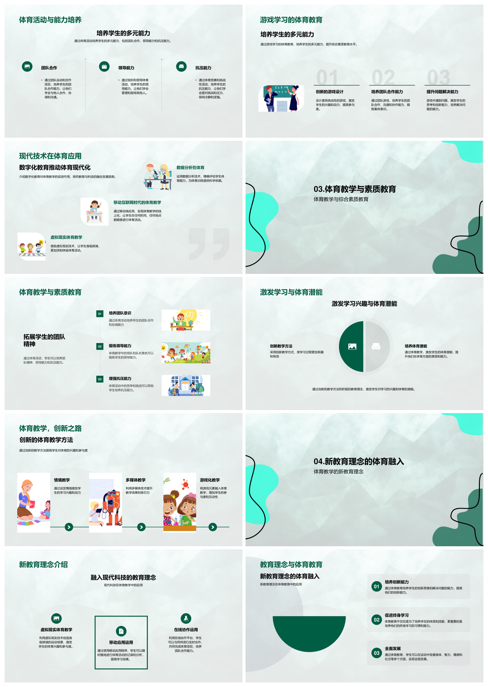这是一张创新体育教学数字化游戏提升素质育能培团队PPT模板,包含创新、体育教学、数字化游戏、提升、素质育能、培团队等主题内容,也可用作创新体育教学数字化游戏、体育教学数字化游戏提升、数字化游戏提升素质、游戏提升素质育能、提升素质育能团队、体育教学数字化游戏、数字化游戏提升、游戏提升素质、提升素质育能、素质育能团队、创新体育教学、体育教学数字化、数字化游戏、游戏提升、提升素质等PPT场景使用。 风云办公提供的创新体育教学数字化游戏提升素质育能培团队PPT模板,下载格式为pptx,一共23页,作品中文字及图均可以修改和编辑,图片更改请在作品中右键图片并更换,文字修改请直接点击文字进行修改。