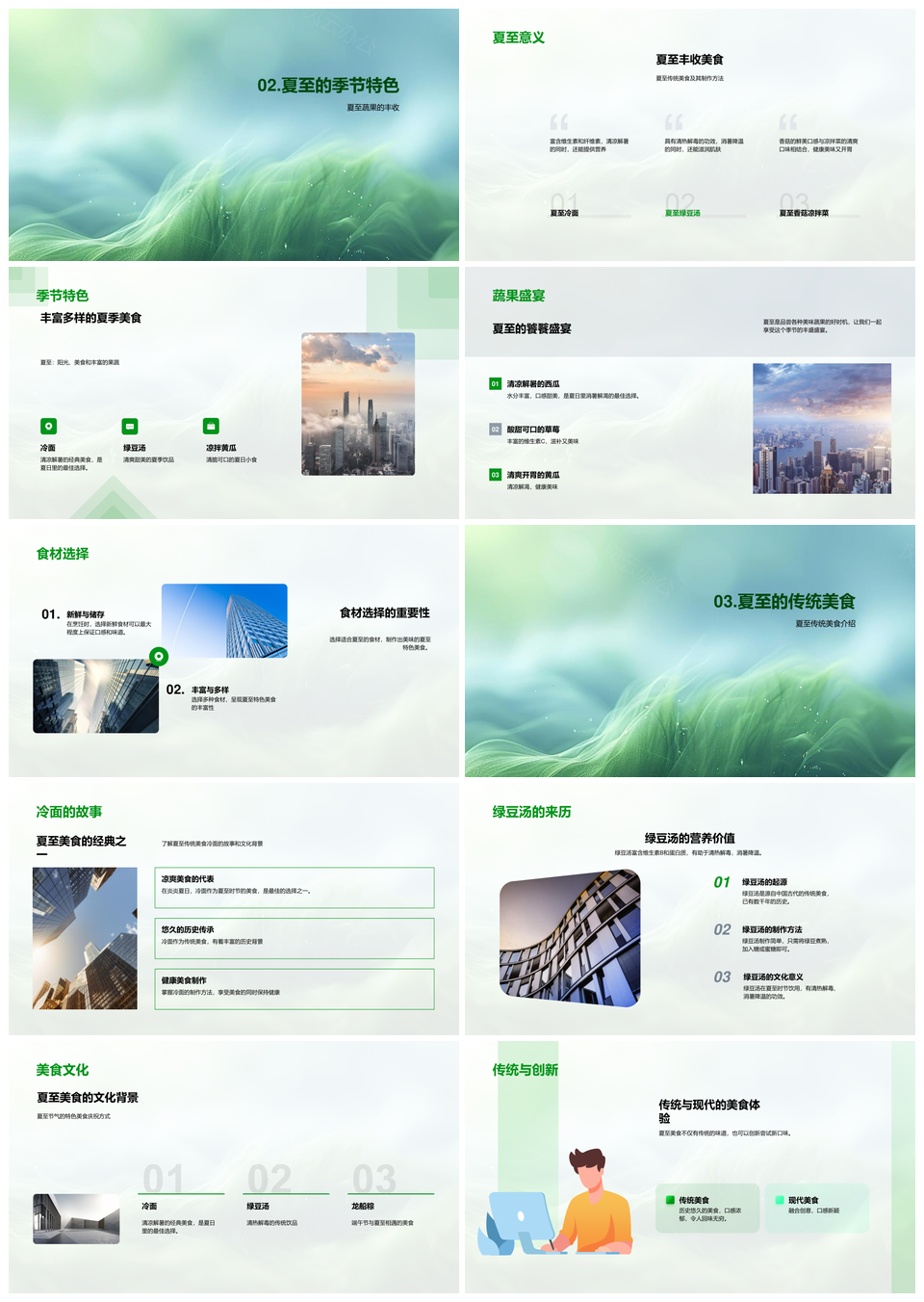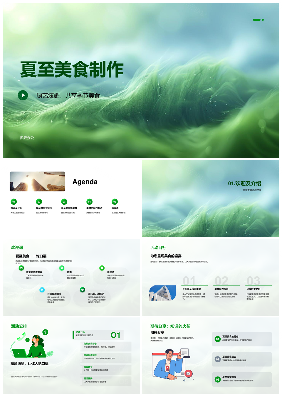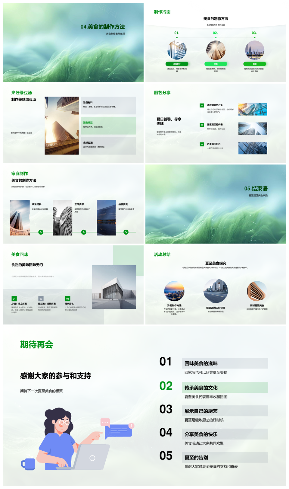 夏至冷面绿豆汤美食制作厨艺展示PPT模板推荐