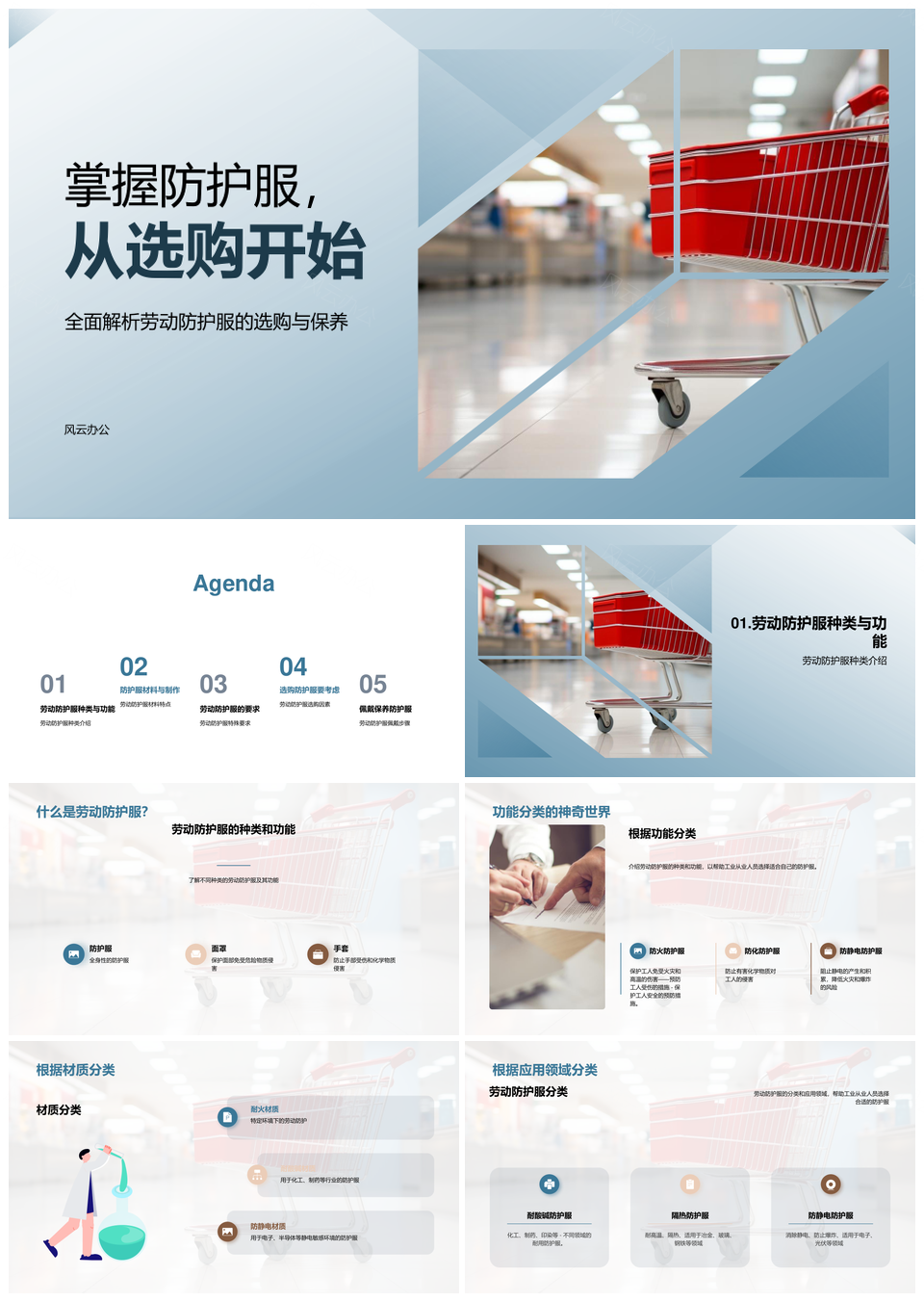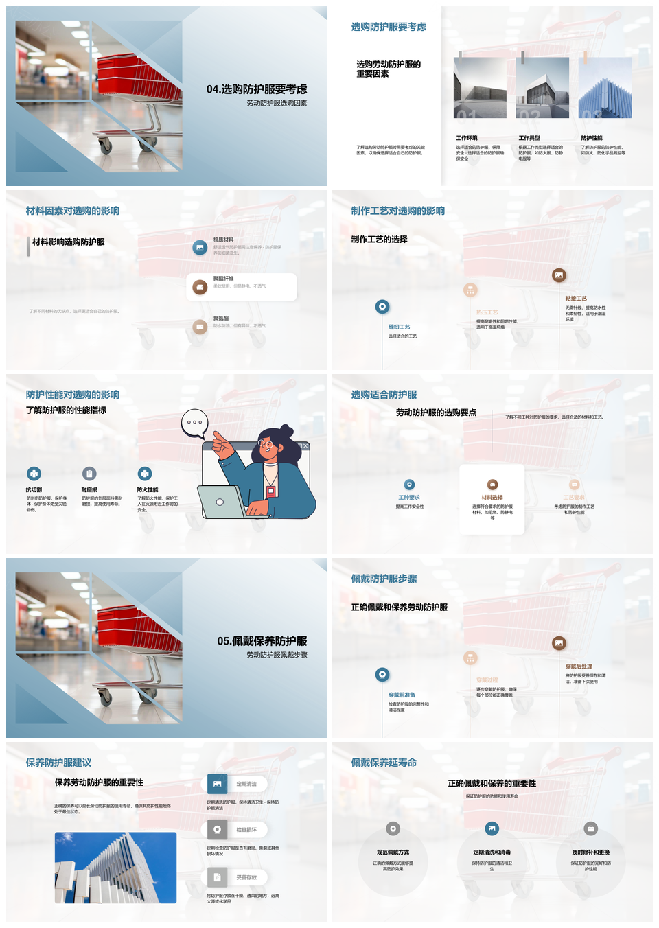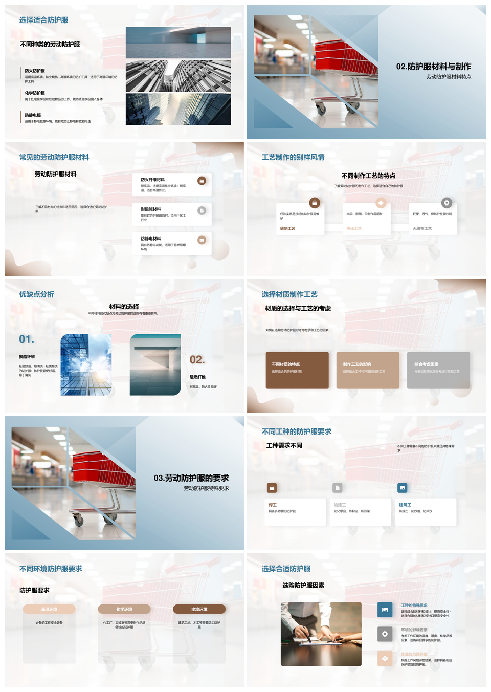 劳动防护服工业施工选购种类功能材料工艺PPT模板推荐