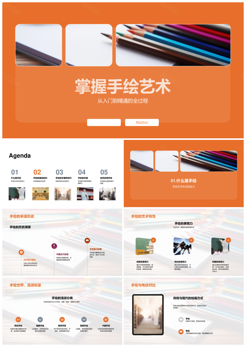 风云办公提供的手绘艺术基础线条色彩构图创思PPT模板,下载格式为pptx,一共28页,作品中文字及图均可以修改和编辑,图片更改请在作品中右键图片并更换,文字修改请直接点击文字进行修改。