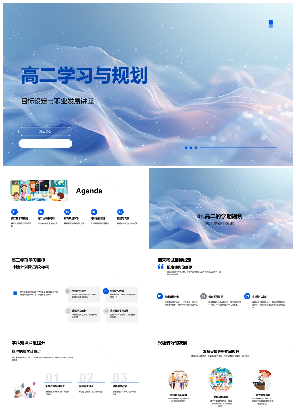 风云办公提供的高二学业职业规划升学目标学科提升PPT模板,下载格式为pptx,一共33页,作品中文字及图均可以修改和编辑,图片更改请在作品中右键图片并更换,文字修改请直接点击文字进行修改。