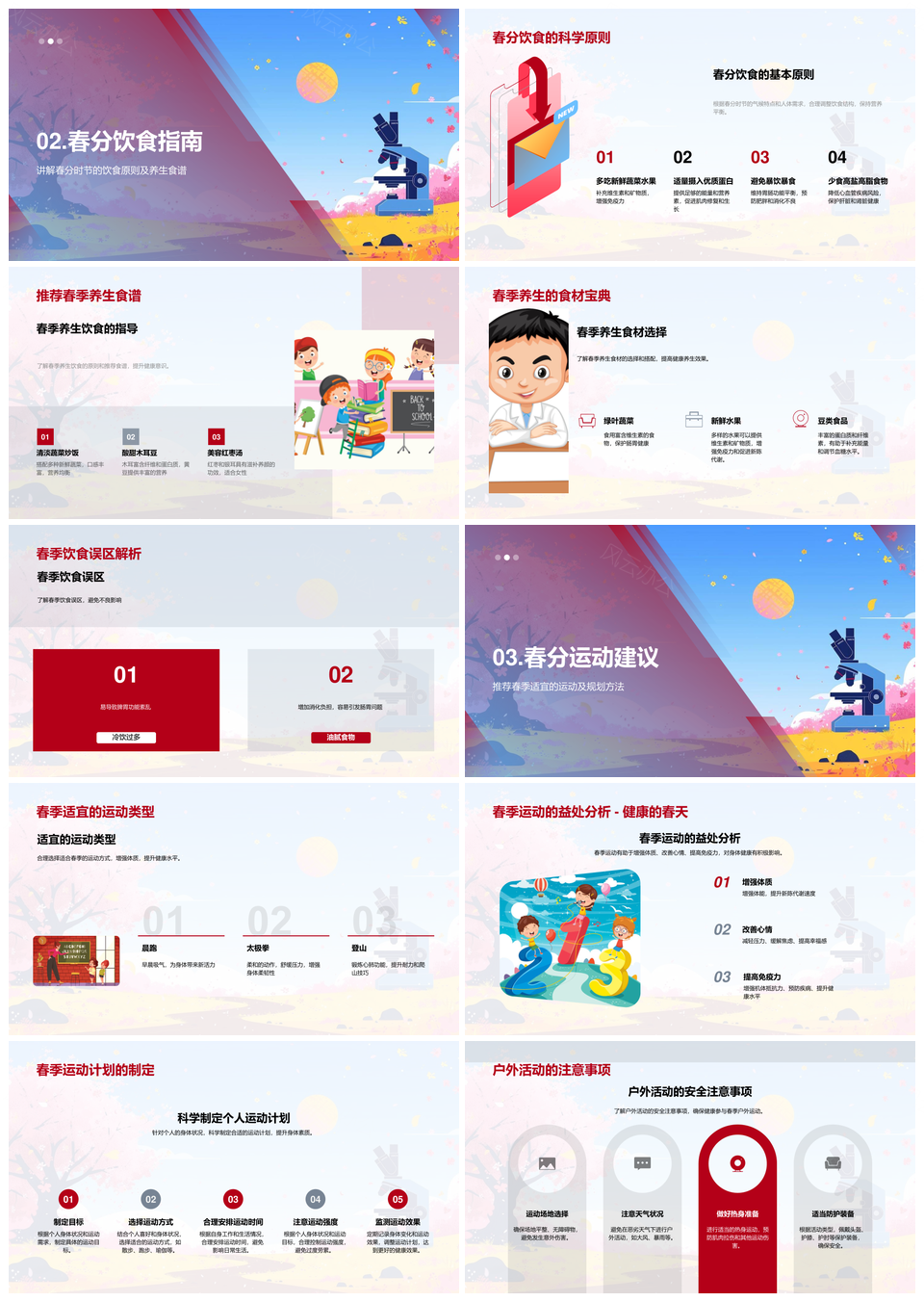 春分五行养生饮食运动免疫春困健康指南PPT模板推荐