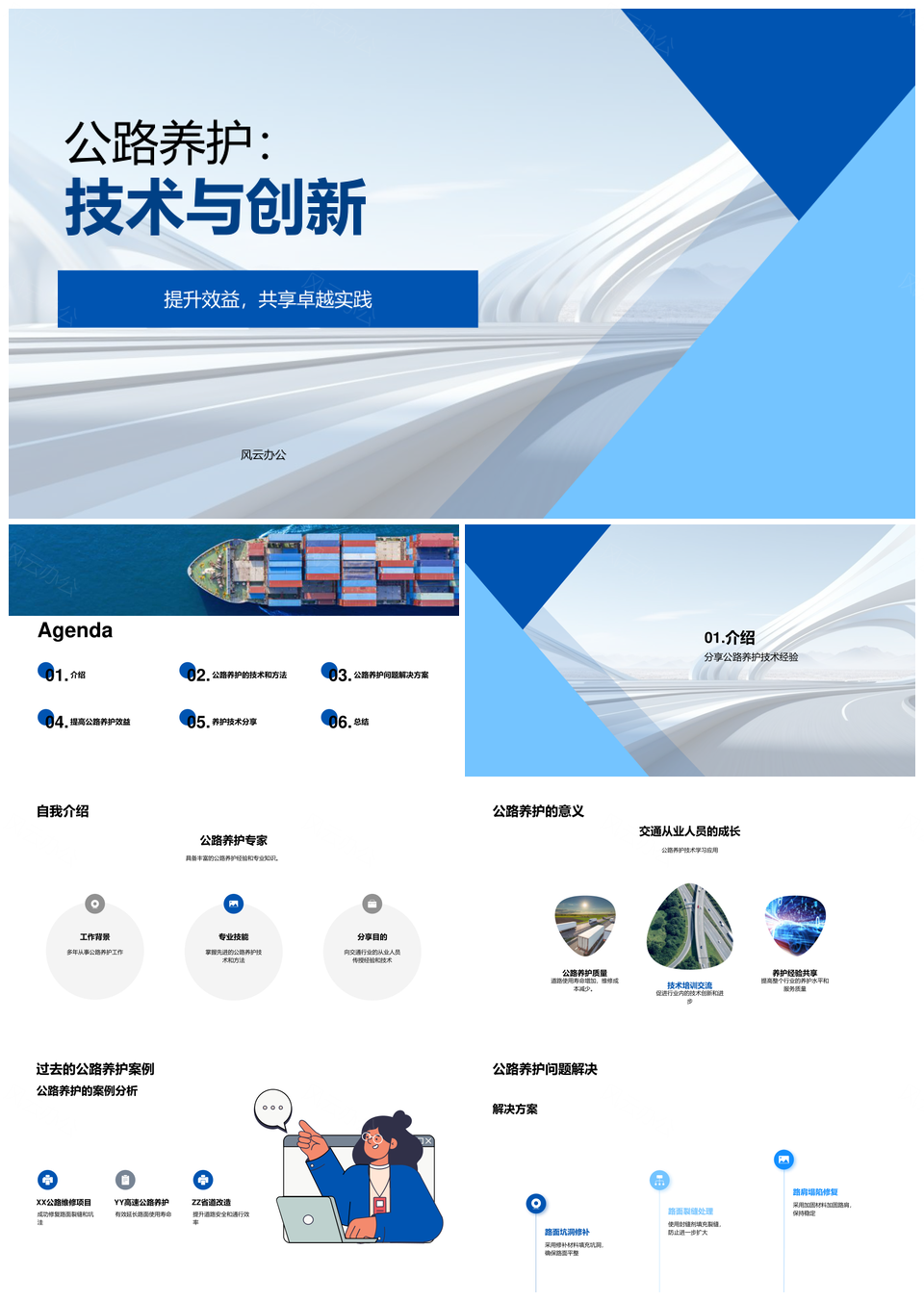 风云办公提供的公路养护技术创新发展经验效益提升PPT模板,下载格式为pptx,一共26页,作品中文字及图均可以修改和编辑,图片更改请在作品中右键图片并更换,文字修改请直接点击文字进行修改。