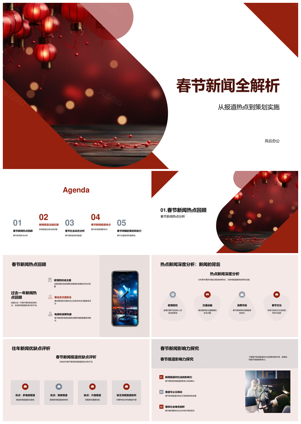风云办公提供的春节新闻报道热点策划法规伦理回顾PPT模板,下载格式为pptx,一共33页,作品中文字及图均可以修改和编辑,图片更改请在作品中右键图片并更换,文字修改请直接点击文字进行修改。