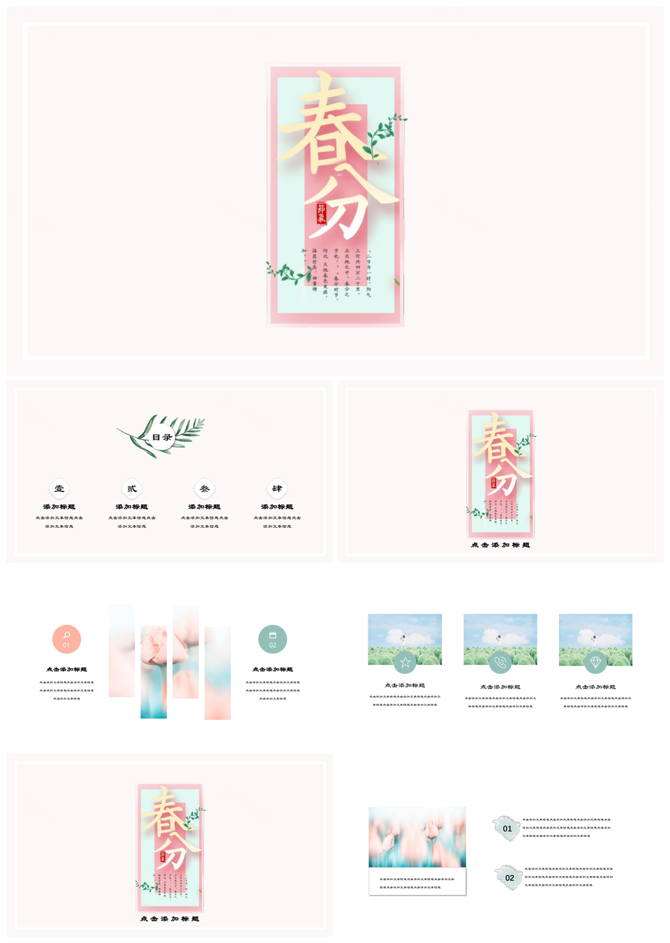 粉色春分唯美小清新手绘极简PPT模板推荐