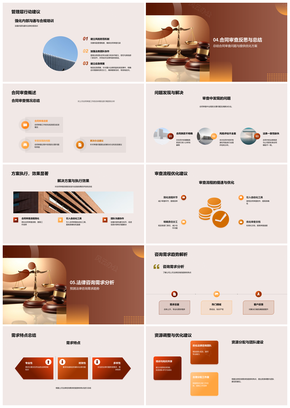 这是一张法务月度法律问题解决策略及风险审查优化总结PPT模板,包含法务、月度、法律问题、解决策略、风险审查、优化、总结等主题内容,也可用作法务月度法律问题解决策略、法律问题解决策略风险审查优化、解决策略风险审查优化总结、法务法律问题风险审查优化、法务月度风险审查优化总结、月度法律问题解决策略风险审查、法律问题解决策略风险审查、解决策略风险审查优化、风险审查优化总结、法务月度法律问题、法务法律问题风险审查、月度法律问题解决策略、法务风险审查优化总结、法律问题风险审查优化、法务月度风险审查等PPT场景使用。 风云办公提供的法务月度法律问题解决策略及风险审查优化总结PPT模板,下载格式为pptx,一共29页,作品中文字及图均可以修改和编辑,图片更改请在作品中右键图片并更换,文字修改请直接点击文字进行修改。