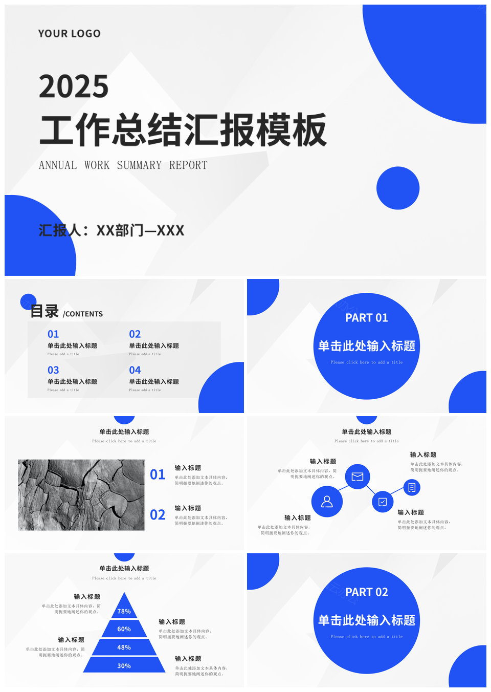 2025蓝色经典创意工作总结汇报年终总结PPT模板