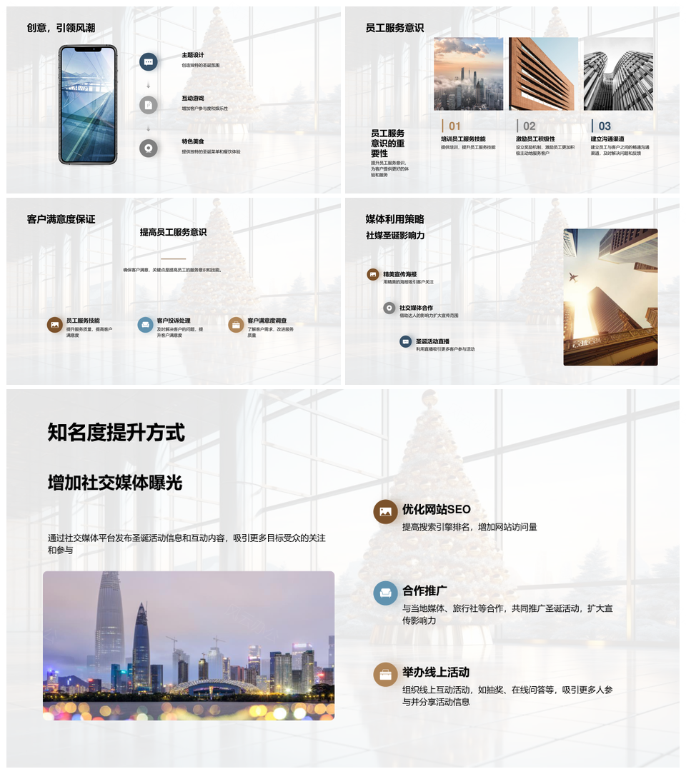 这是一张酒店圣诞活动策划竞争客户期望装饰服务营销提升忠诚度PPT模板,包含酒店、圣诞、活动策划、竞争、客户、期望、装饰、服务、营销、提升、忠诚度等主题内容,也可用作酒店圣诞活动策划、圣诞活动策划竞争、活动策划竞争客户、客户期望装饰服务、装饰服务营销提升、服务营销提升忠诚度、酒店圣诞活动竞争、圣诞活动客户期望、活动策划客户装饰、客户装饰服务营销、装饰服务提升忠诚度、酒店圣诞策划营销、圣诞策划营销忠诚度、酒店装饰服务提升、圣诞营销提升忠诚度等PPT场景使用。 风云办公提供的酒店圣诞活动策划竞争客户期望装饰服务营销提升忠诚度PPT模板,下载格式为pptx,一共33页,作品中文字及图均可以修改和编辑,图片更改请在作品中右键图片并更换,文字修改请直接点击文字进行修改。