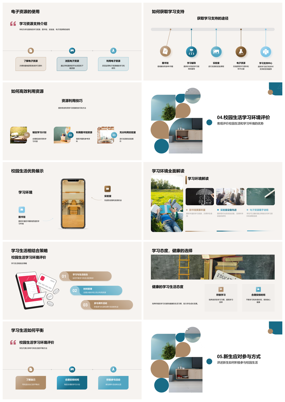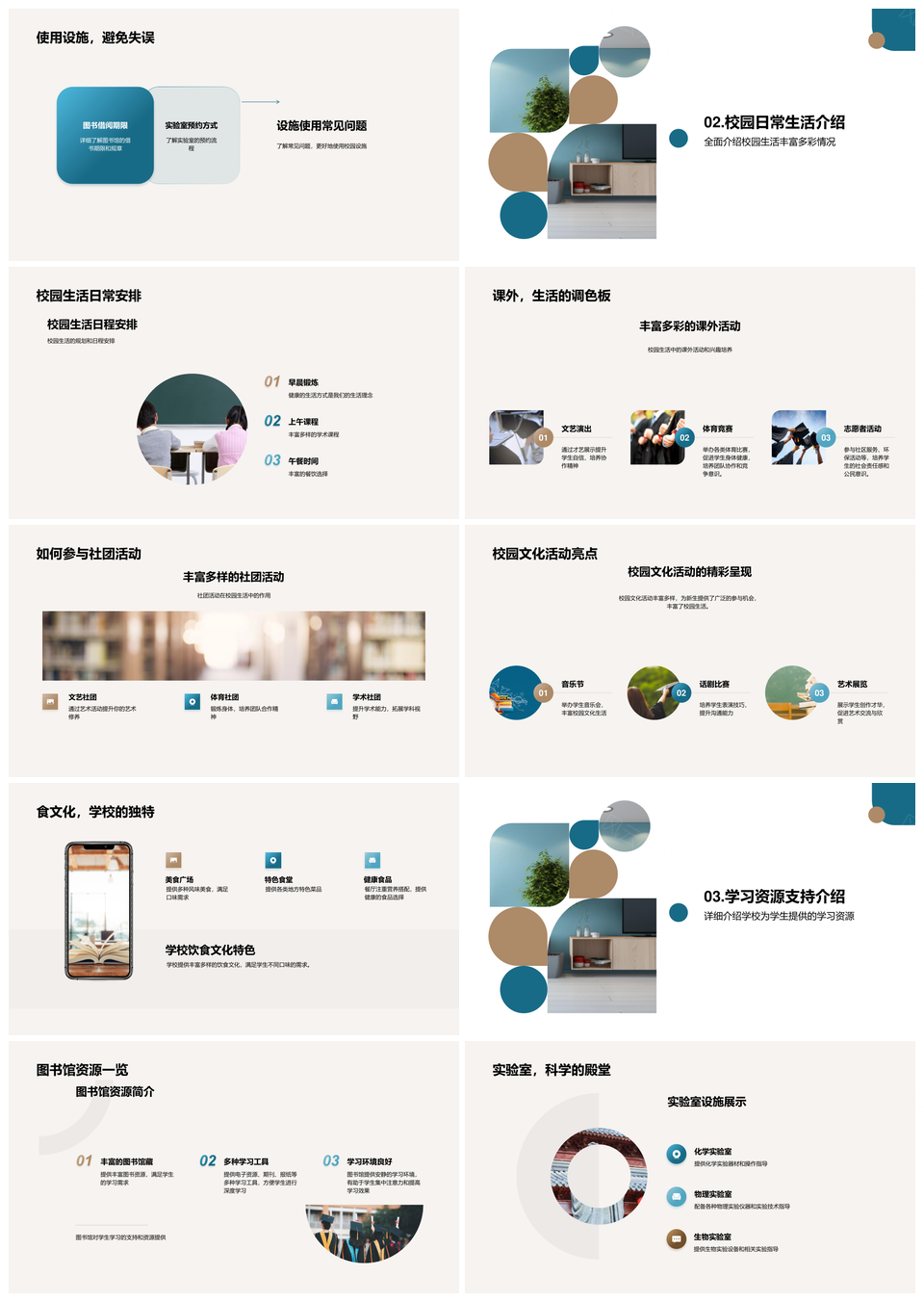 校园生活策略资源设施社团活动学习支持环境PPT模板推荐