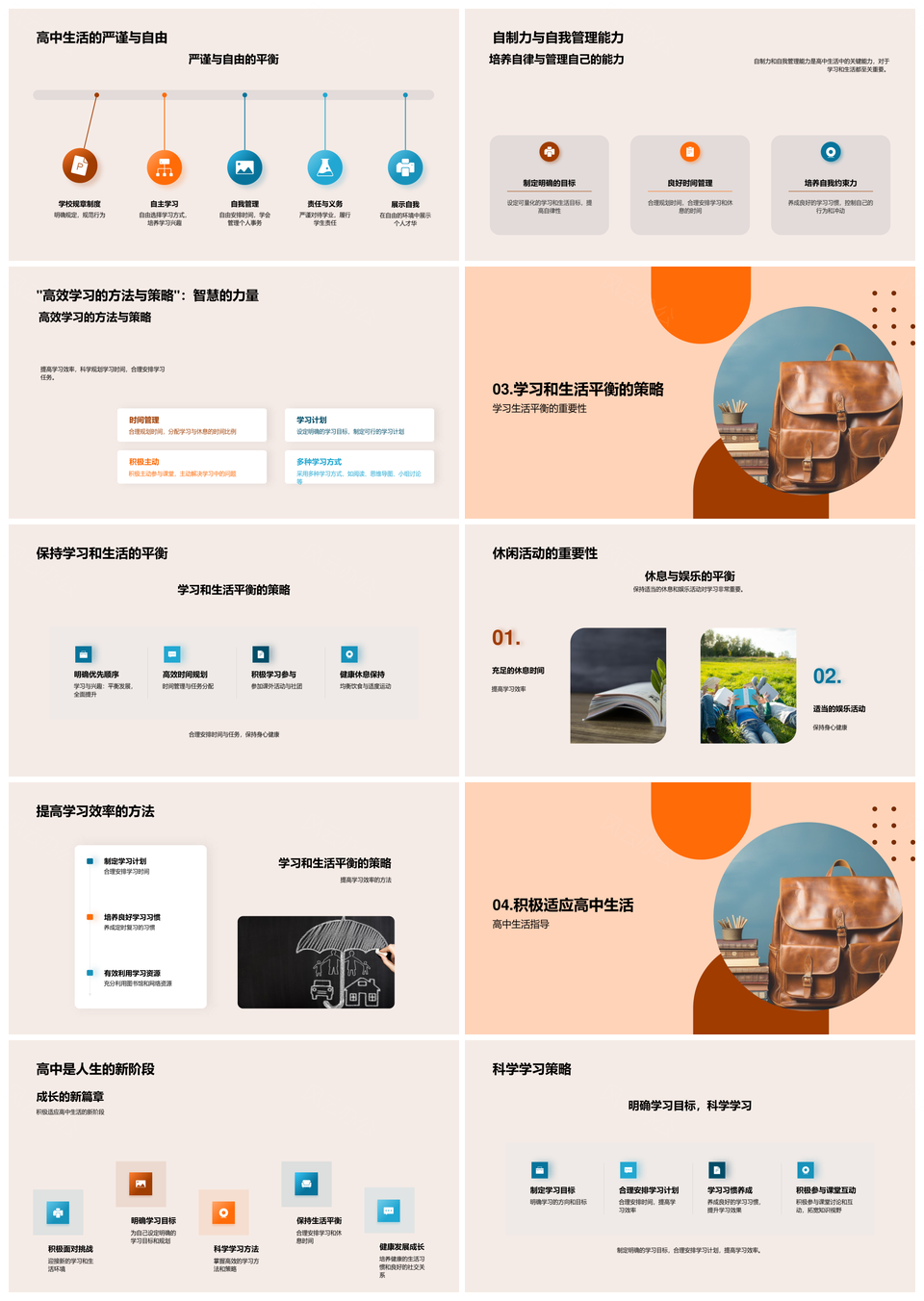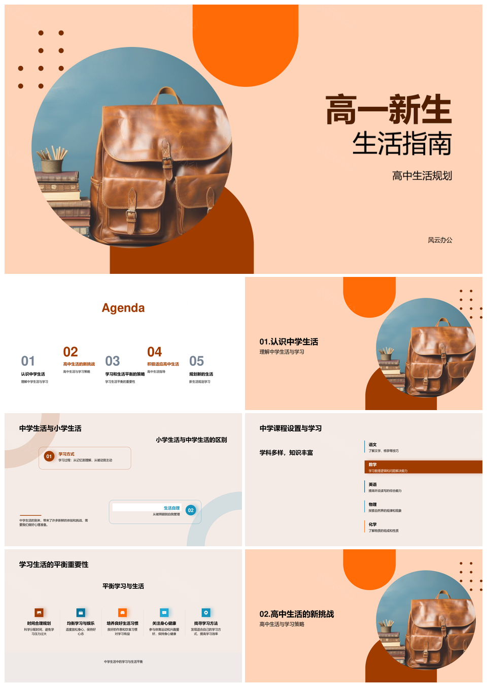 风云办公提供的高一新生高效学习与生活管理指南PPT模板,下载格式为pptx,一共23页,作品中文字及图均可以修改和编辑,图片更改请在作品中右键图片并更换,文字修改请直接点击文字进行修改。