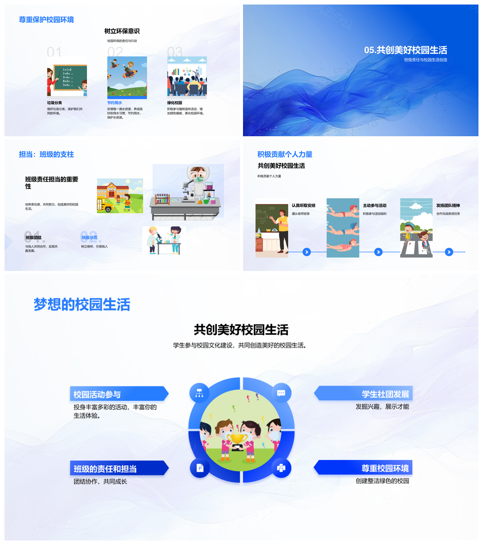 校园文化社团生活优美环境设施齐备共创共享PPT模板