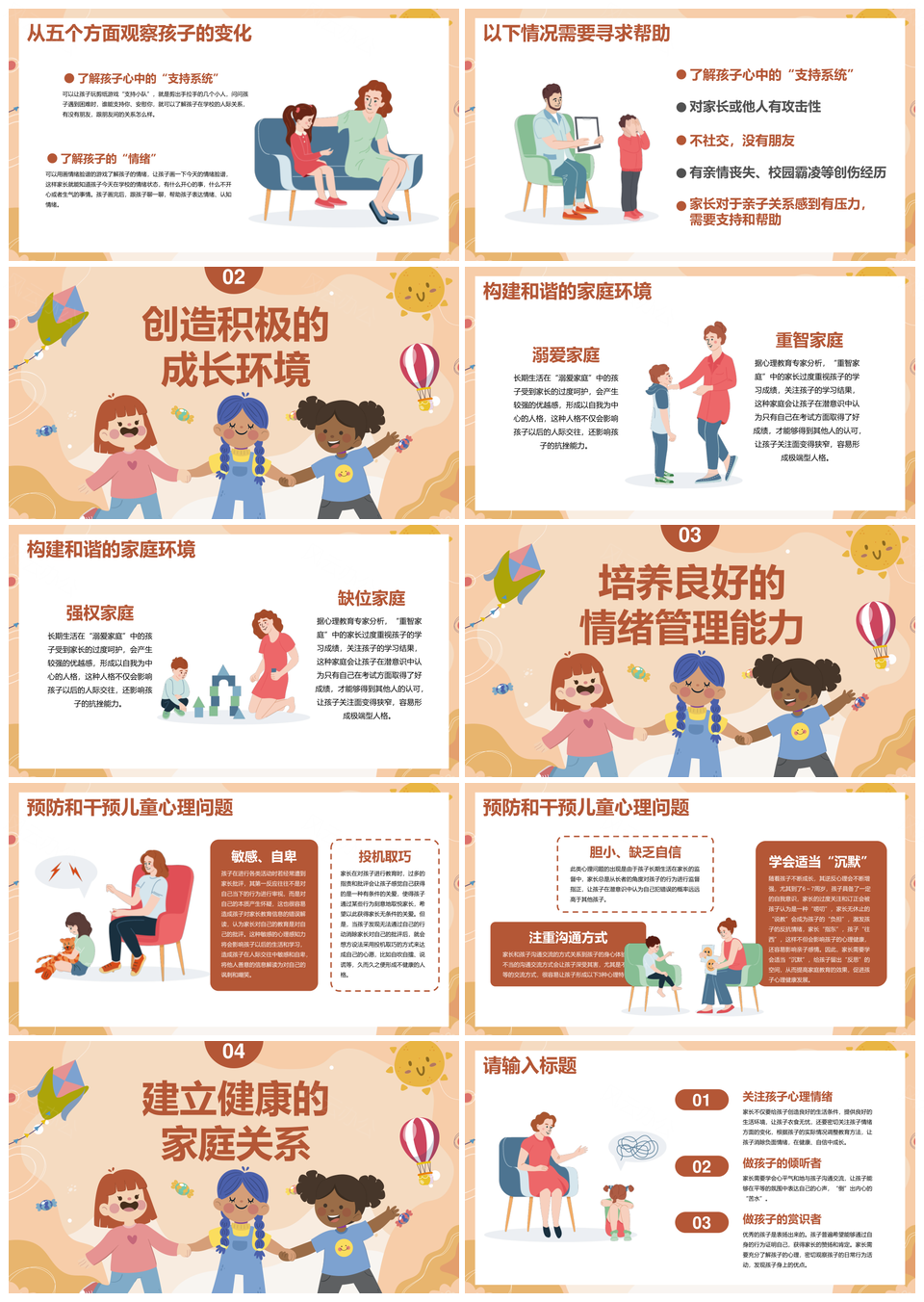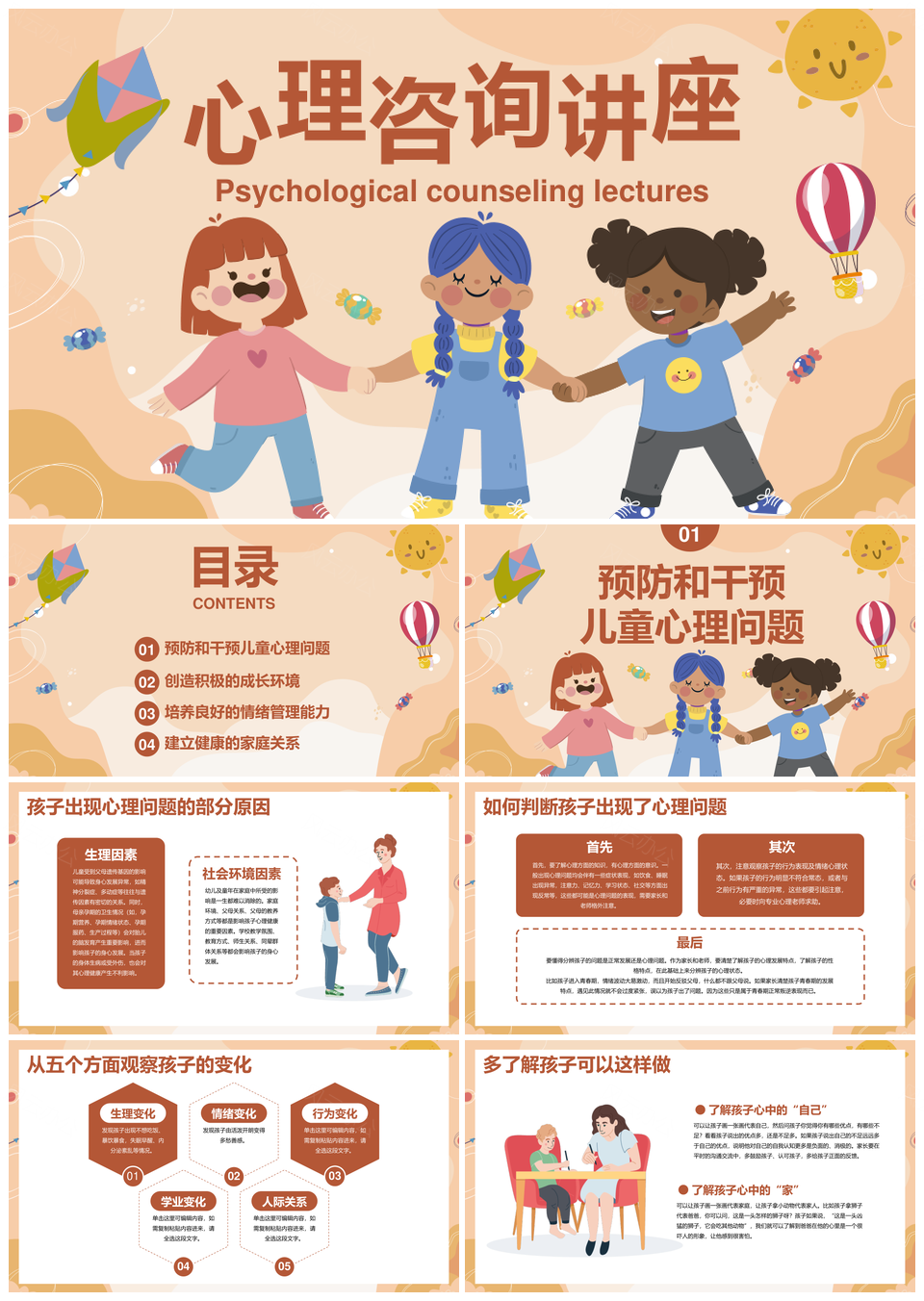 风云办公提供的卡通儿童插画心理咨询讲座PPT模板,下载格式为pptx,一共18页,作品中文字及图均可以修改和编辑,图片更改请在作品中右键图片并更换,文字修改请直接点击文字进行修改。