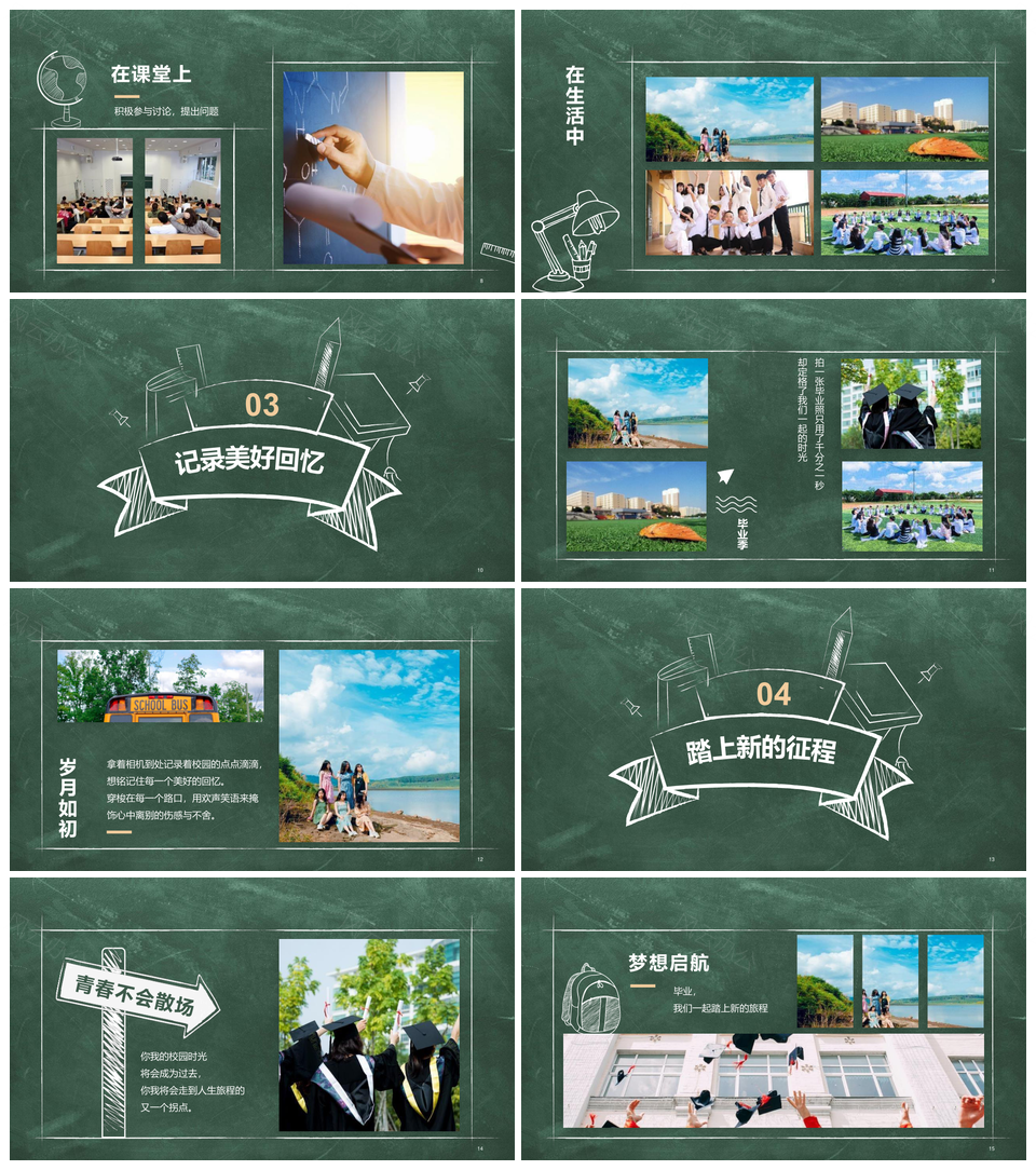 这是一张绿色黑板插画课桌毕业季相册青春回忆PPT模板,包含绿色、黑板、插画、课桌、毕业季、相册、青春、回忆等主题内容,也可用作绿色黑板插画课桌、黑板插画课桌毕业季、插画课桌毕业季相册、课桌毕业季相册青春、毕业季相册青春回忆、黑板课桌毕业季相册、插画毕业季相册青春、绿色黑板课桌毕业季、黑板毕业季相册青春、绿色黑板插画毕业季、毕业季青春回忆相册、绿色黑板毕业季相册、课桌毕业季青春回忆、插画课桌毕业季青春、绿色黑板课桌相册等PPT场景使用。