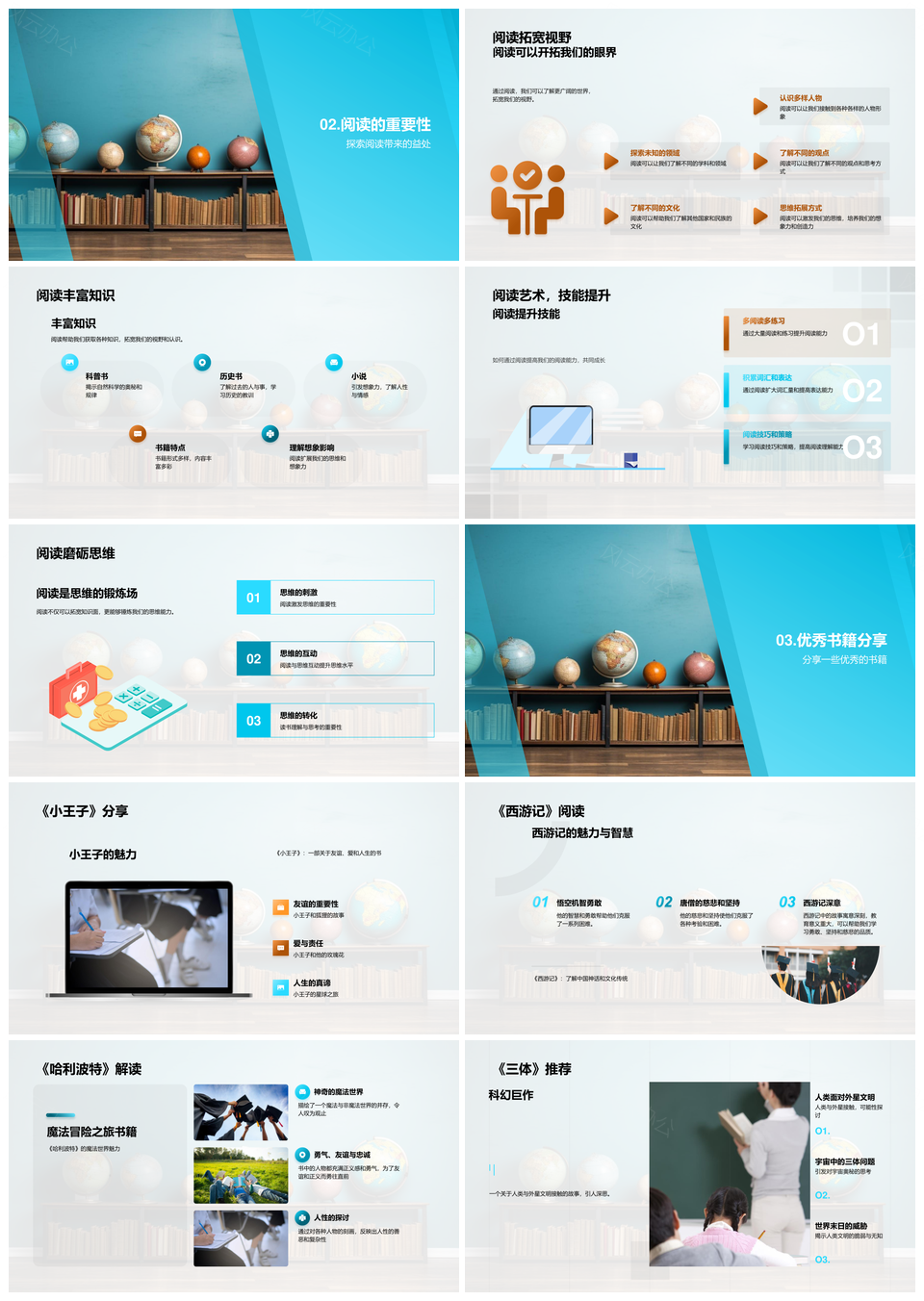 阅读教育力量小王子西游记哈利波特三体科普PPT模板推荐
