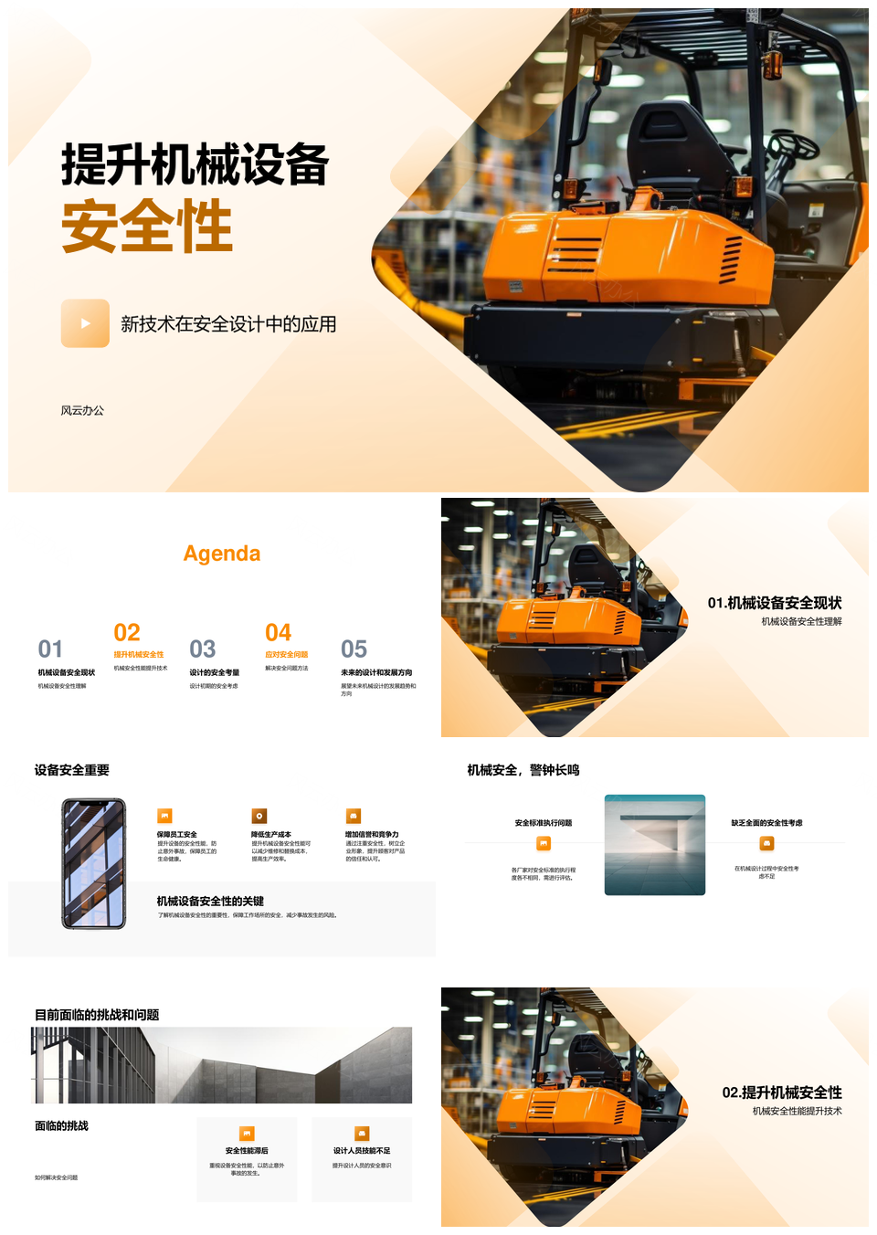 风云办公提供的工业机械安全性能提升技术PPT模板,下载格式为pptx,一共23页,作品中文字及图均可以修改和编辑,图片更改请在作品中右键图片并更换,文字修改请直接点击文字进行修改。