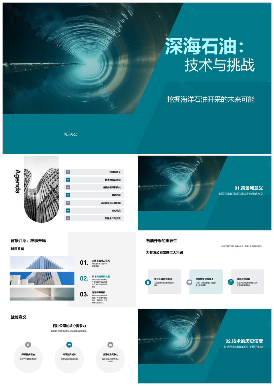 风云办公提供的深海石油开采技术发展与应用战略意义PPT模板,下载格式为pptx,一共34页,作品中文字及图均可以修改和编辑,图片更改请在作品中右键图片并更换,文字修改请直接点击文字进行修改。