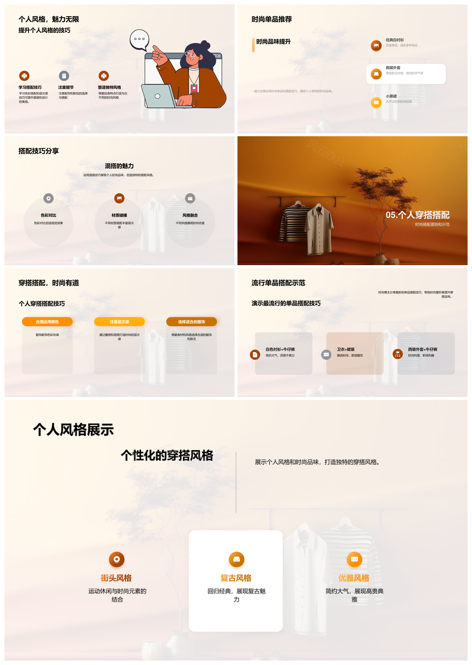 时尚搭配技巧潮流服饰配饰颜色图案日常正式款式指南PPT模板