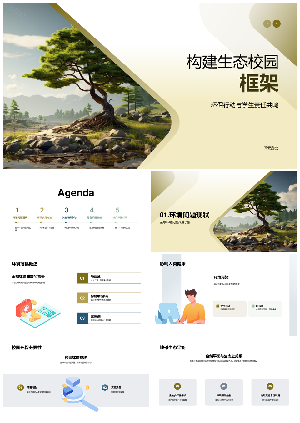 风云办公提供的生态校园环保教育与学生参与实践PPT模板,下载格式为pptx,一共33页,作品中文字及图均可以修改和编辑,图片更改请在作品中右键图片并更换,文字修改请直接点击文字进行修改。