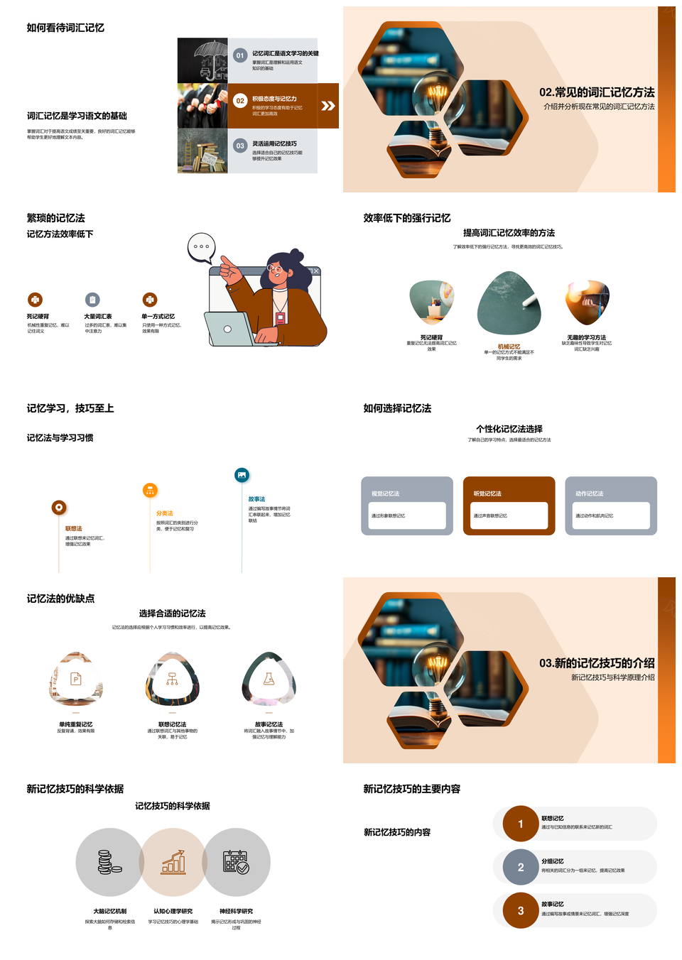 风云办公提供的词汇新记忆法提升语文成绩科学高效PPT模板,下载格式为pptx,一共33页,作品中文字及图均可以修改和编辑,图片更改请在作品中右键图片并更换,文字修改请直接点击文字进行修改。