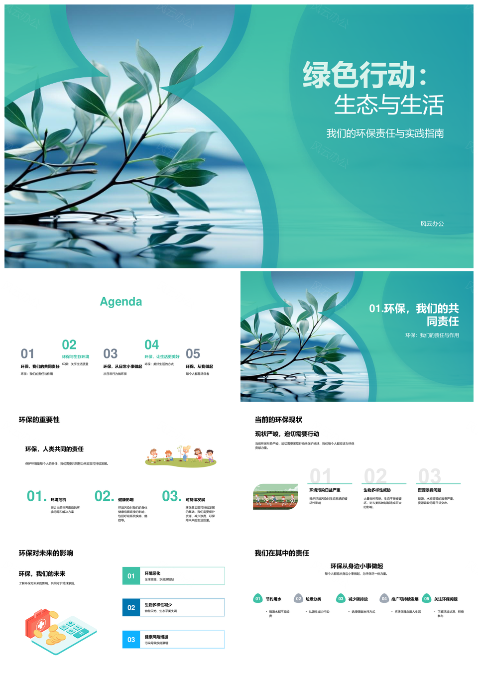 这是一张绿色行动生态生活与环保教育守护地球未来PPT模板,包含绿色行动、生态生活、环保教育、守护、地球未来等主题内容,也可用作绿色行动生态生活环保教育、绿色行动生态生活环保、生态生活环保教育守护、环保教育守护地球未来、行动生态生活环保教育、生态生活环保教育地球、绿色行动生态环保教育、绿色行动环保教育守护、生态环保教育守护地球、环保守护地球地球未来、绿色行动生态生活守护、绿色生态生活环保教育、行动生态环保教育守护、生态环保守护地球未来、绿色环保教育守护地球等PPT场景使用。 风云办公提供的绿色行动生态生活与环保教育守护地球未来PPT模板,下载格式为pptx,一共33页,作品中文字及图均可以修改和编辑,图片更改请在作品中右键图片并更换,文字修改请直接点击文字进行修改。