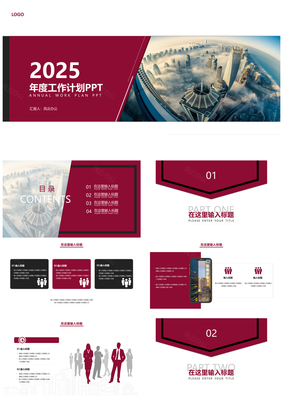 风云办公提供的2025红色工作计划暗红简约商务PPT模板,下载格式为pptx,一共20页,作品中文字及图均可以修改和编辑,图片更改请在作品中右键图片并更换,文字修改请直接点击文字进行修改。
