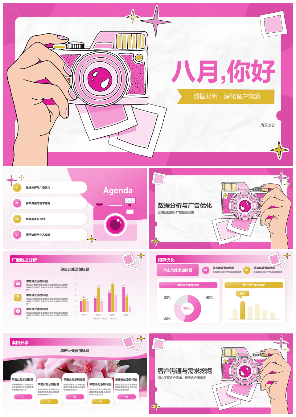 这是一张九月营销策划数据分析广告投放客户管理备战计划PPT模板,包含营销策划、数据分析、广告投放、客户管理、备战计划等主题内容,也可用作九月营销策划数据分析广告投放、营销策划数据分析广告投放客户管理、数据分析广告投放客户管理备战计划、九月营销策划广告投放客户管理、策划数据分析广告投放客户管理、广告投放客户管理备战计划、九月营销策划数据分析、营销策划广告投放客户管理、数据分析广告投放客户管理、九月广告投放客户管理、客户管理备战计划、营销策划数据分析广告投放、数据分析广告投放备战、广告投放客户管理备战、策划广告投放客户管理等PPT场景使用。 风云办公提供的九月营销策划数据分析广告投放客户管理备战计划PPT模板,下载格式为pptx,一共18页,作品中文字及图均可以修改和编辑,图片更改请在作品中右键图片并更换,文字修改请直接点击文字进行修改。