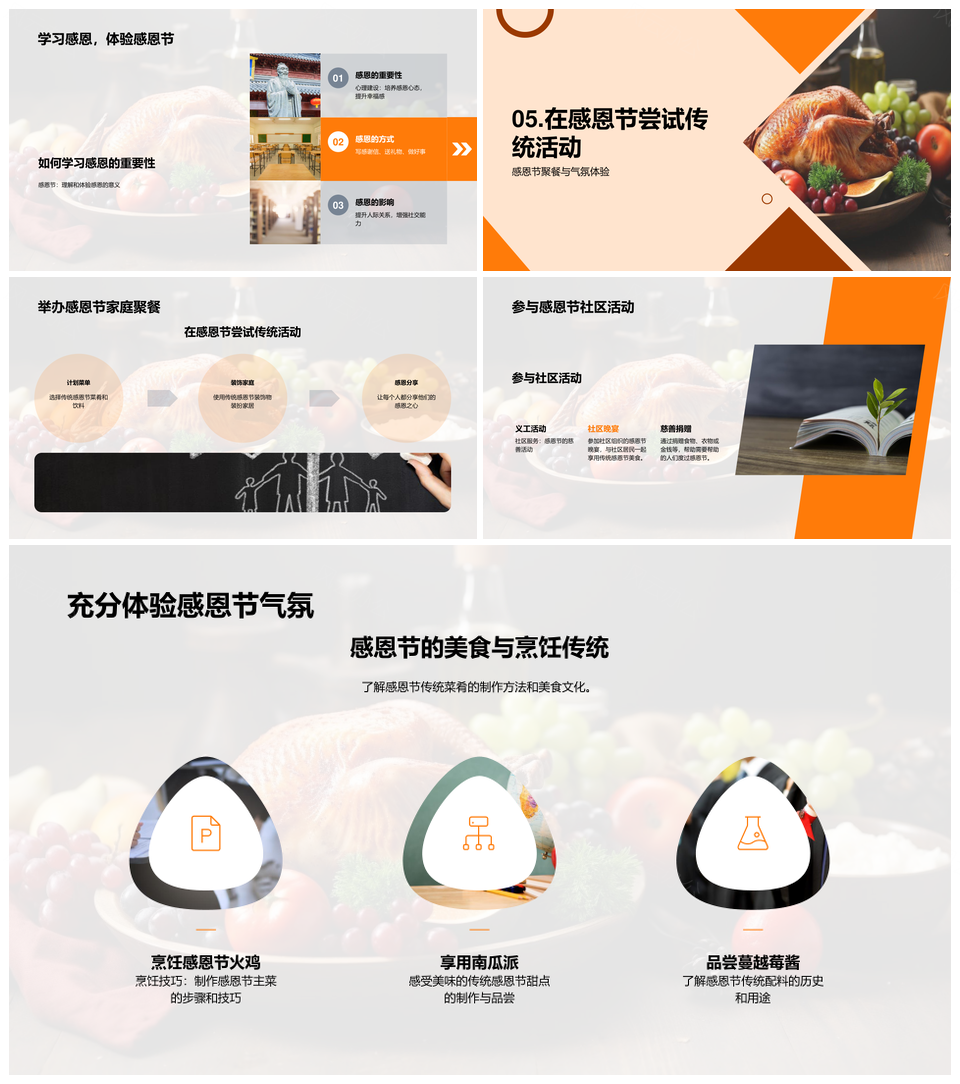 2025感恩节烤火鸡南瓜派传统美食烹饪技巧PPT模板