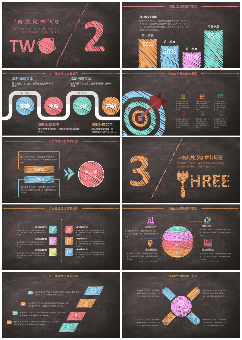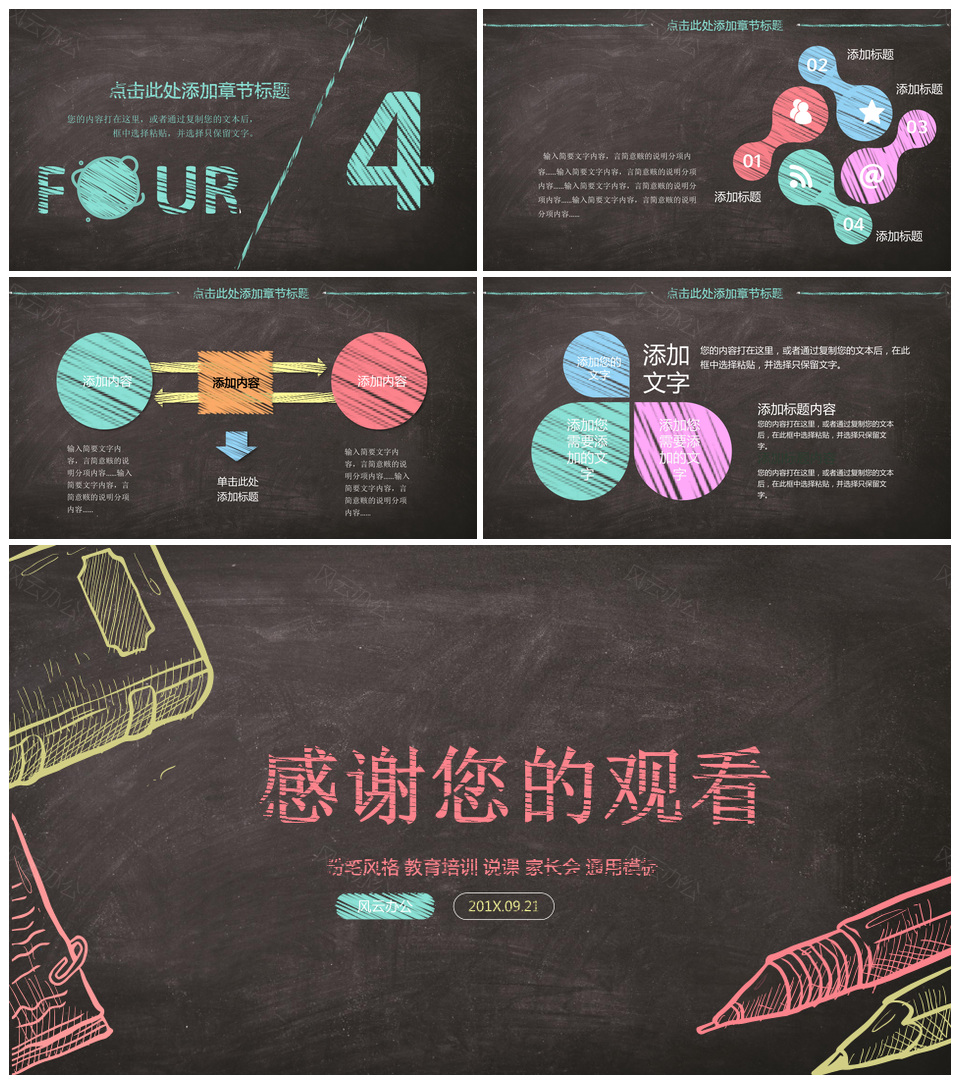 绿色创意手绘黑板风教育教学课件通用PPT模板