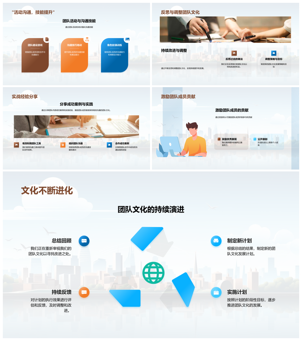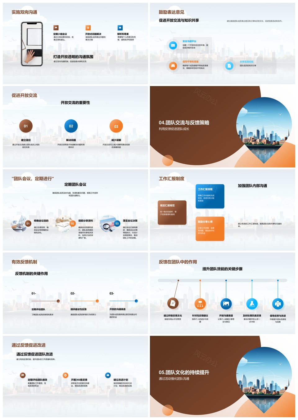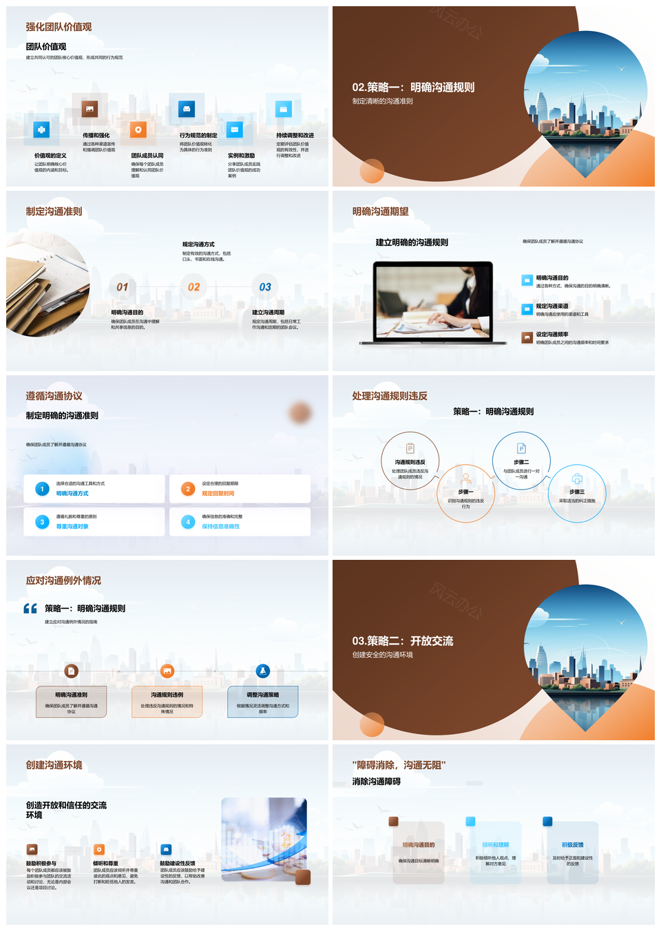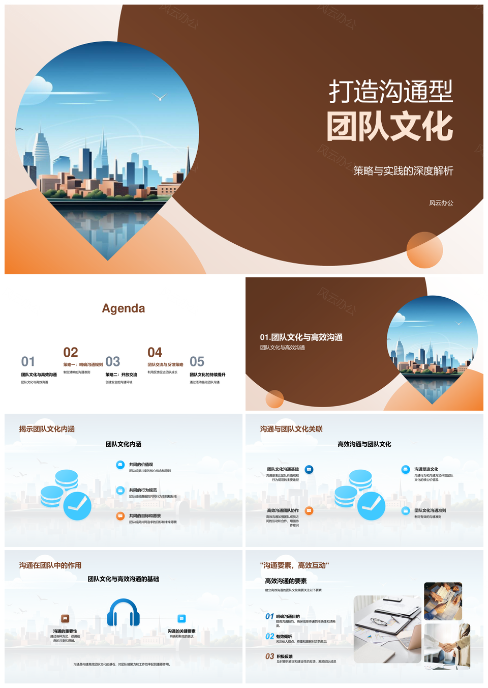 风云办公提供的高效沟通型团队文化构建策略PPT模板,下载格式为pptx,一共33页,作品中文字及图均可以修改和编辑,图片更改请在作品中右键图片并更换,文字修改请直接点击文字进行修改。