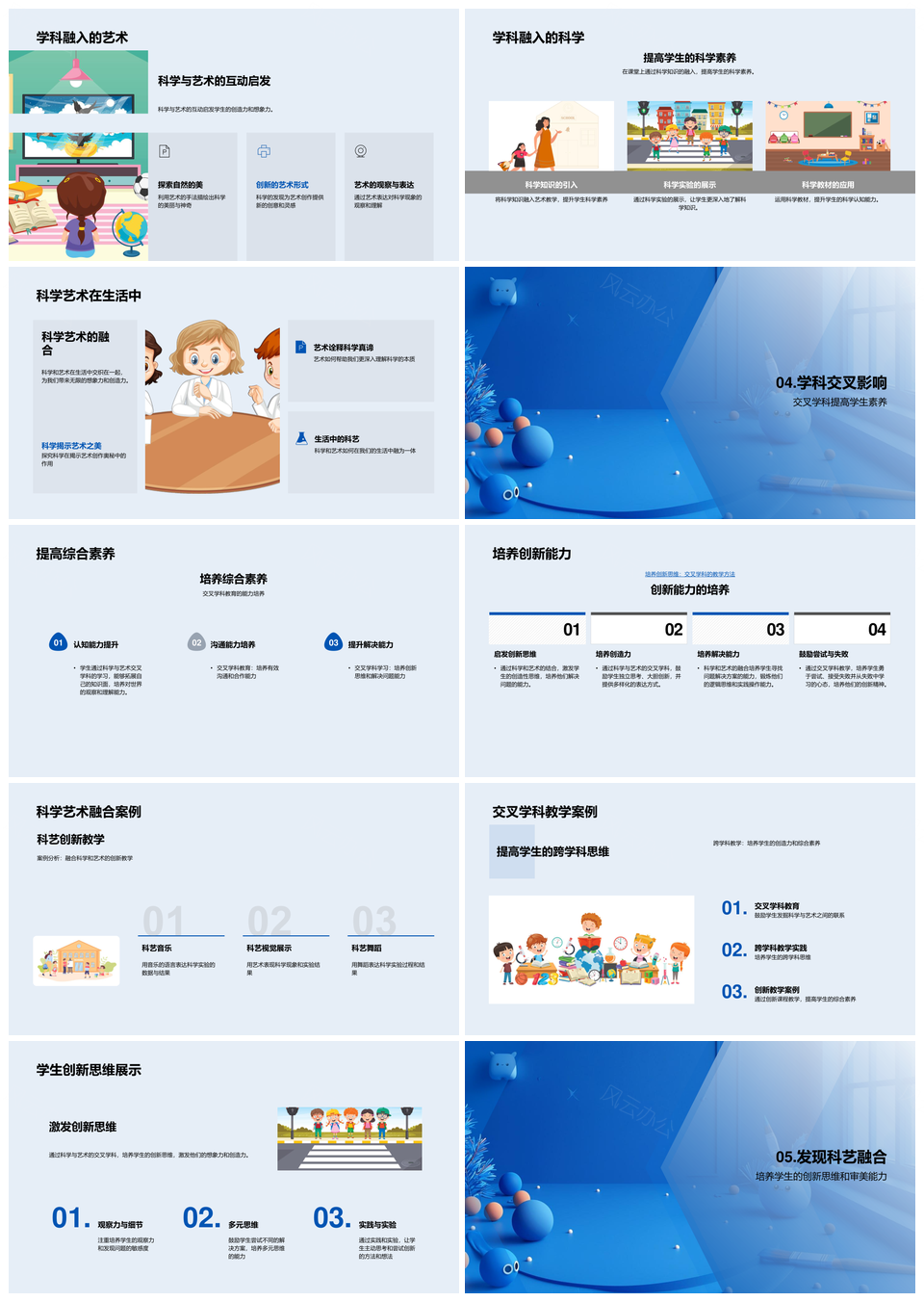 风云办公提供的科艺融合教学跨学科创新思维审美案例PPT模板,下载格式为pptx,一共33页,作品中文字及图均可以修改和编辑,图片更改请在作品中右键图片并更换,文字修改请直接点击文字进行修改。