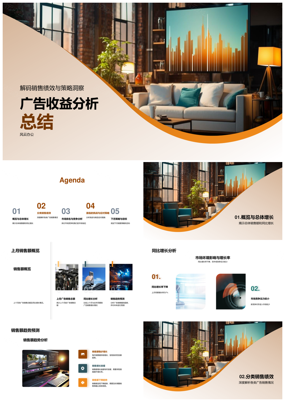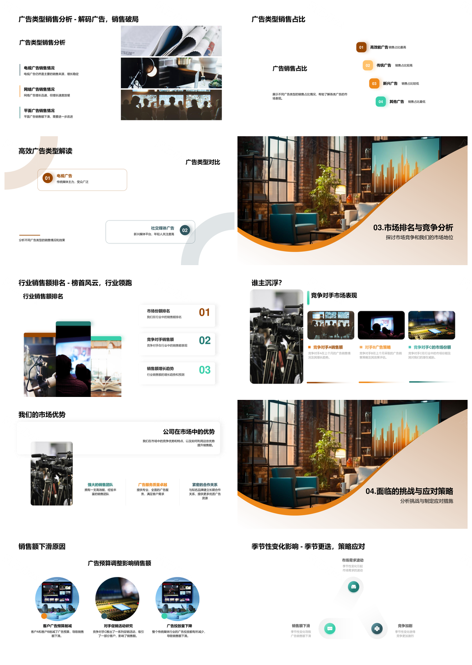 这是一张媒体公司广告销售收益绩效趋势策略竞争分析PPT模板,包含媒体公司、广告销售、收益、绩效、趋势、策略、竞争、分析等主题内容,也可用作媒体公司广告销售、公司广告销售收益、广告销售收益绩效、销售收益绩效趋势、收益绩效趋势策略、绩效趋势策略竞争、趋势策略竞争分析、媒体公司广告、公司广告销售、广告销售收益、销售收益绩效、收益绩效趋势、绩效趋势策略、趋势策略竞争、策略竞争分析等PPT场景使用。 风云办公提供的媒体公司广告销售收益绩效趋势策略竞争分析PPT模板,下载格式为pptx,一共25页,作品中文字及图均可以修改和编辑,图片更改请在作品中右键图片并更换,文字修改请直接点击文字进行修改。