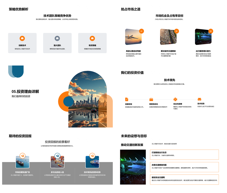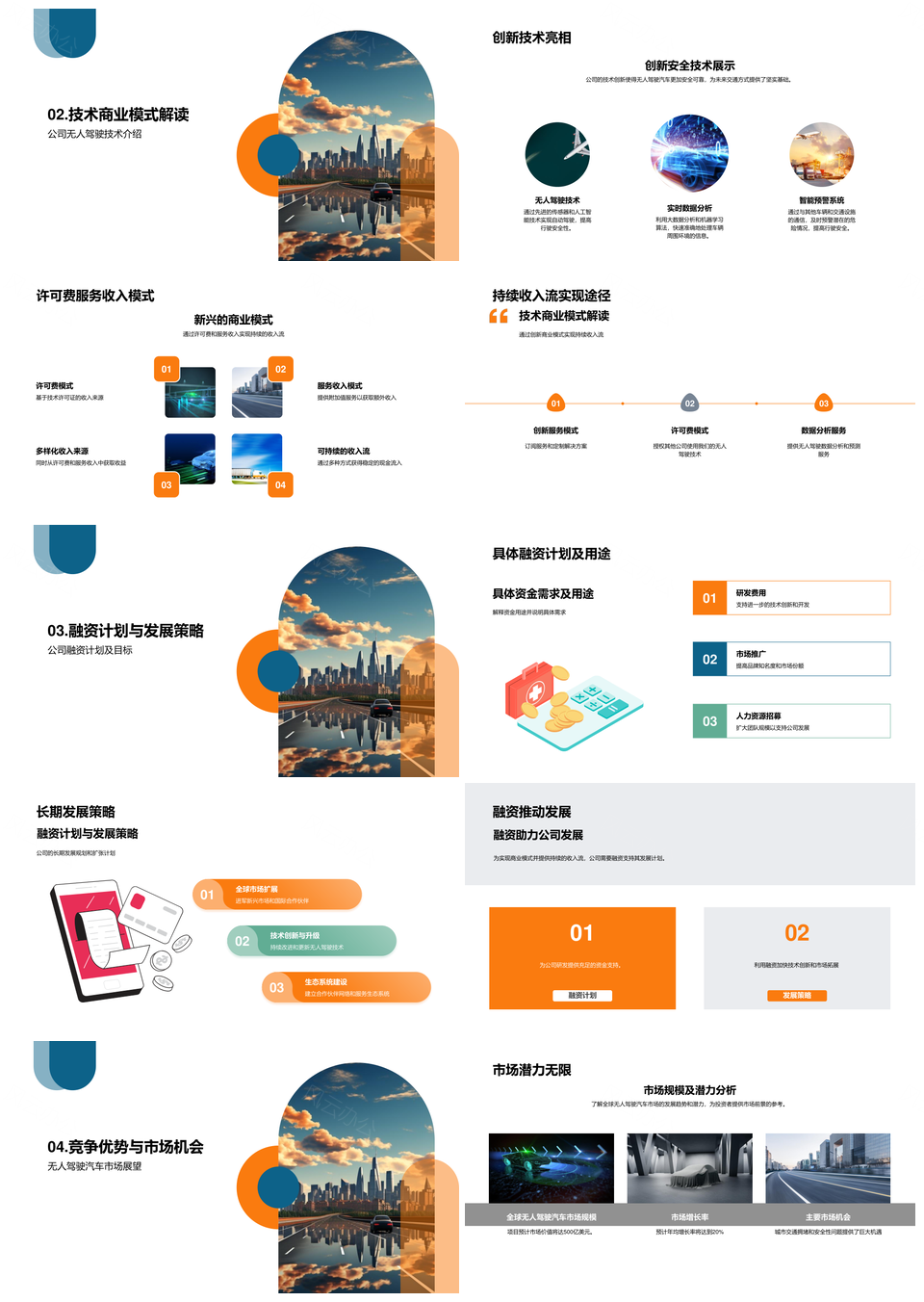 这是一张无人驾驶技术突破驱动创业风投革新商业模式挑战PPT模板,包含无人驾驶技术、突破、驱动、创业、风投、革新、商业模式、挑战等主题内容,也可用作无人驾驶技术突破驱动创业、技术突破驱动创业风投、驱动创业风投革新、创业风投革新商业模式、风投革新商业模式挑战、无人驾驶技术突破革新、技术突破驱动革新挑战、驱动创业商业模式挑战、无人驾驶驱动革新挑战、技术突破风投革新商业模式、创业风投商业模式挑战、无人驾驶驱动风投革新、技术突破创业革新挑战、革新商业模式挑战驱动、无人驾驶技术风投革新等PPT场景使用。 风云办公提供的无人驾驶技术突破驱动创业风投革新商业模式挑战PPT模板,下载格式为pptx,一共24页,作品中文字及图均可以修改和编辑,图片更改请在作品中右键图片并更换,文字修改请直接点击文字进行修改。