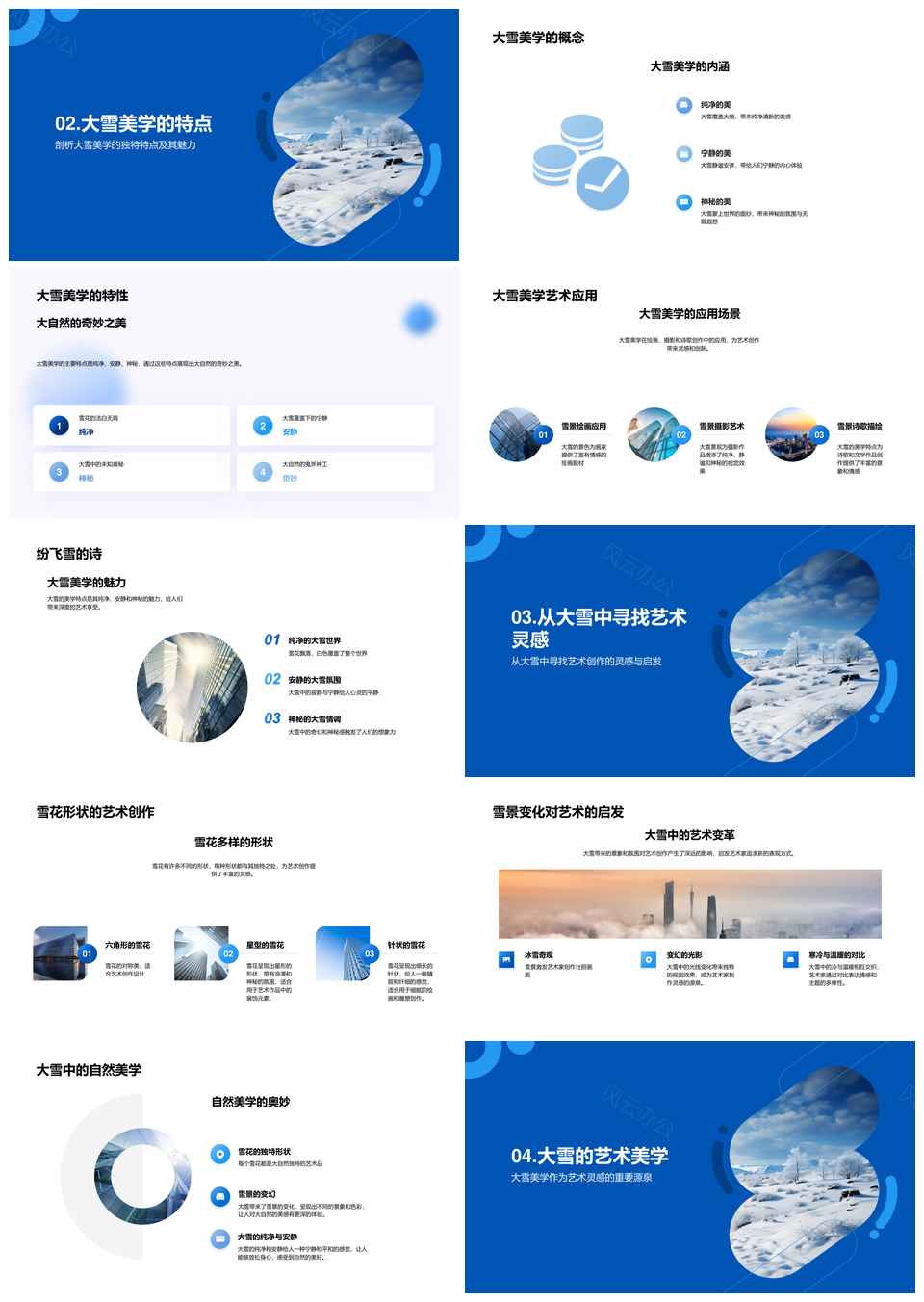 风云办公提供的雪景美学视域下艺术创新多元表现PPT模板,下载格式为pptx,一共25页,作品中文字及图均可以修改和编辑,图片更改请在作品中右键图片并更换,文字修改请直接点击文字进行修改。