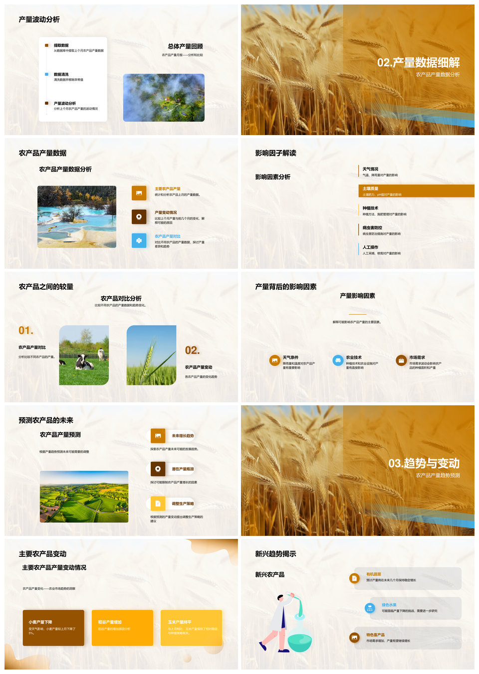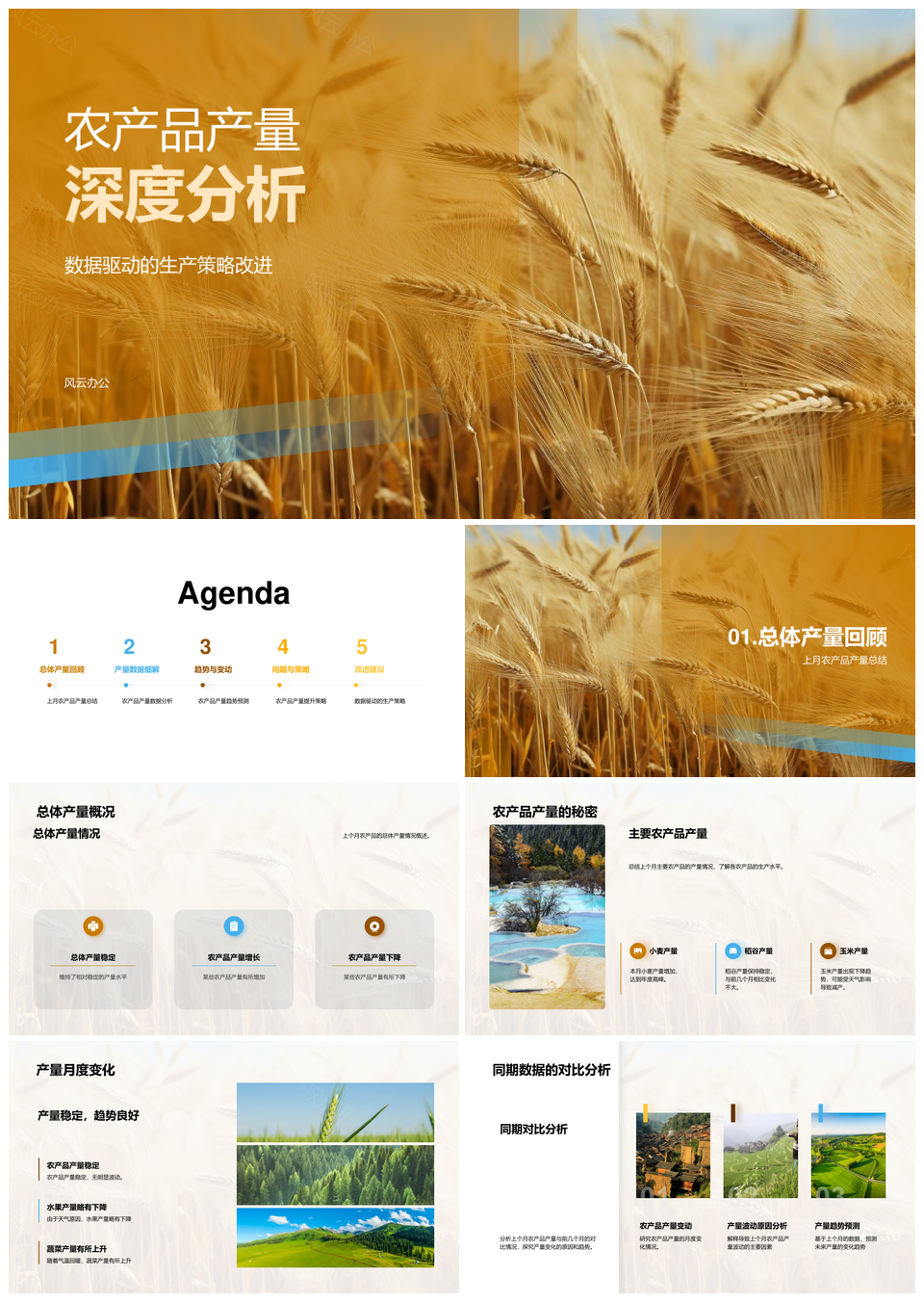 风云办公提供的数据驱动农产品产量策略与多因素分析PPT模板,下载格式为pptx,一共33页,作品中文字及图均可以修改和编辑,图片更改请在作品中右键图片并更换,文字修改请直接点击文字进行修改。