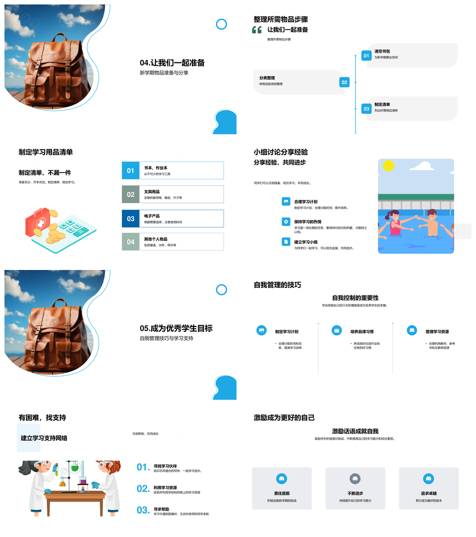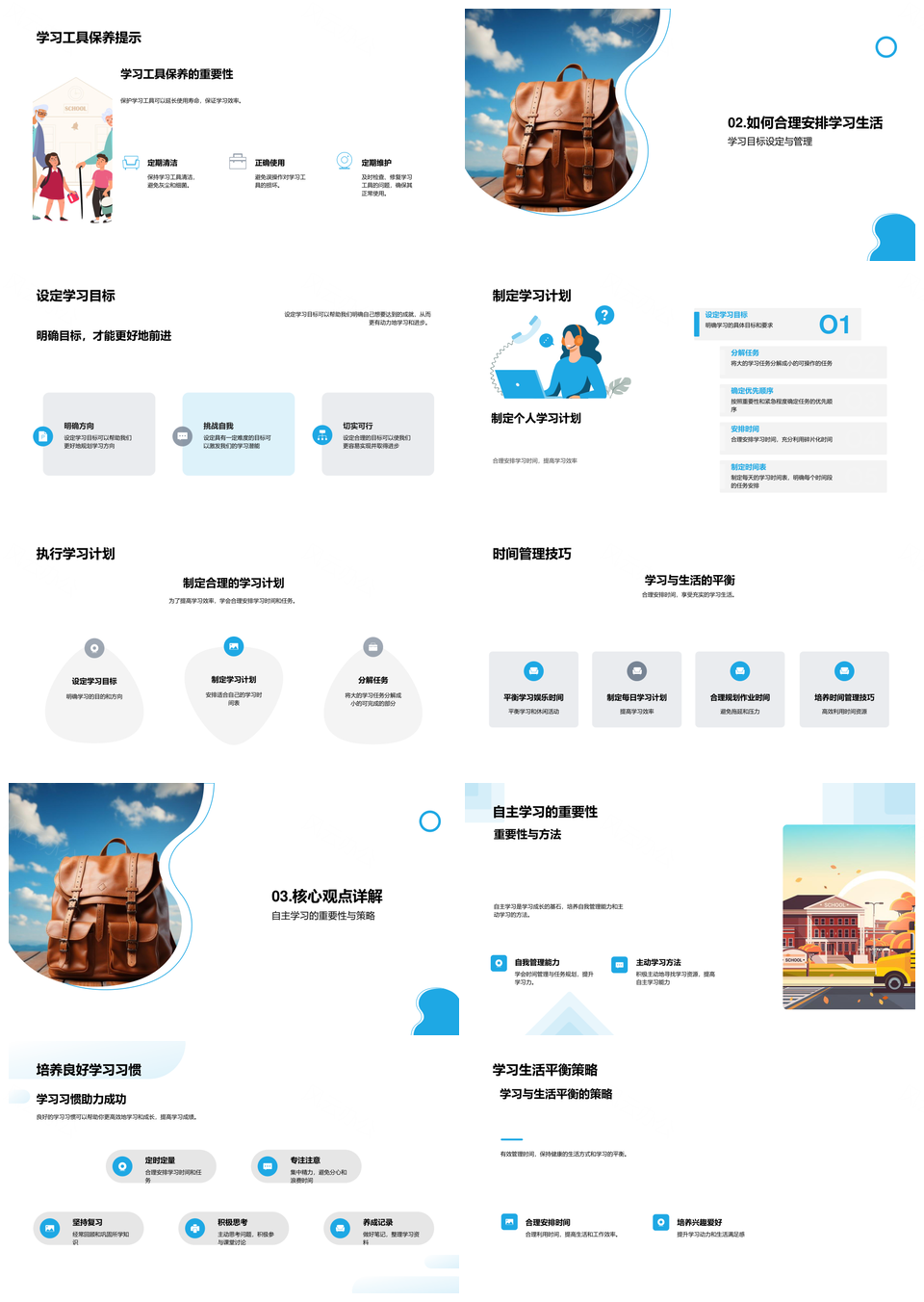 这是一张开学自主计划学具时间管理备学品PPT模板,包含开学、自主计划、学具、时间管理、备学品等主题内容,也可用作开学自主计划时间管理、自主计划学具时间管理、开学自主计划学具、开学自主计划、自主计划学具、学具时间管理、时间管理备学品、开学学具时间管理、自主学具时间管理、计划时间管理备学品、开学自主、自主计划、计划学具、学具时间管理、时间管理备学品等PPT场景使用。