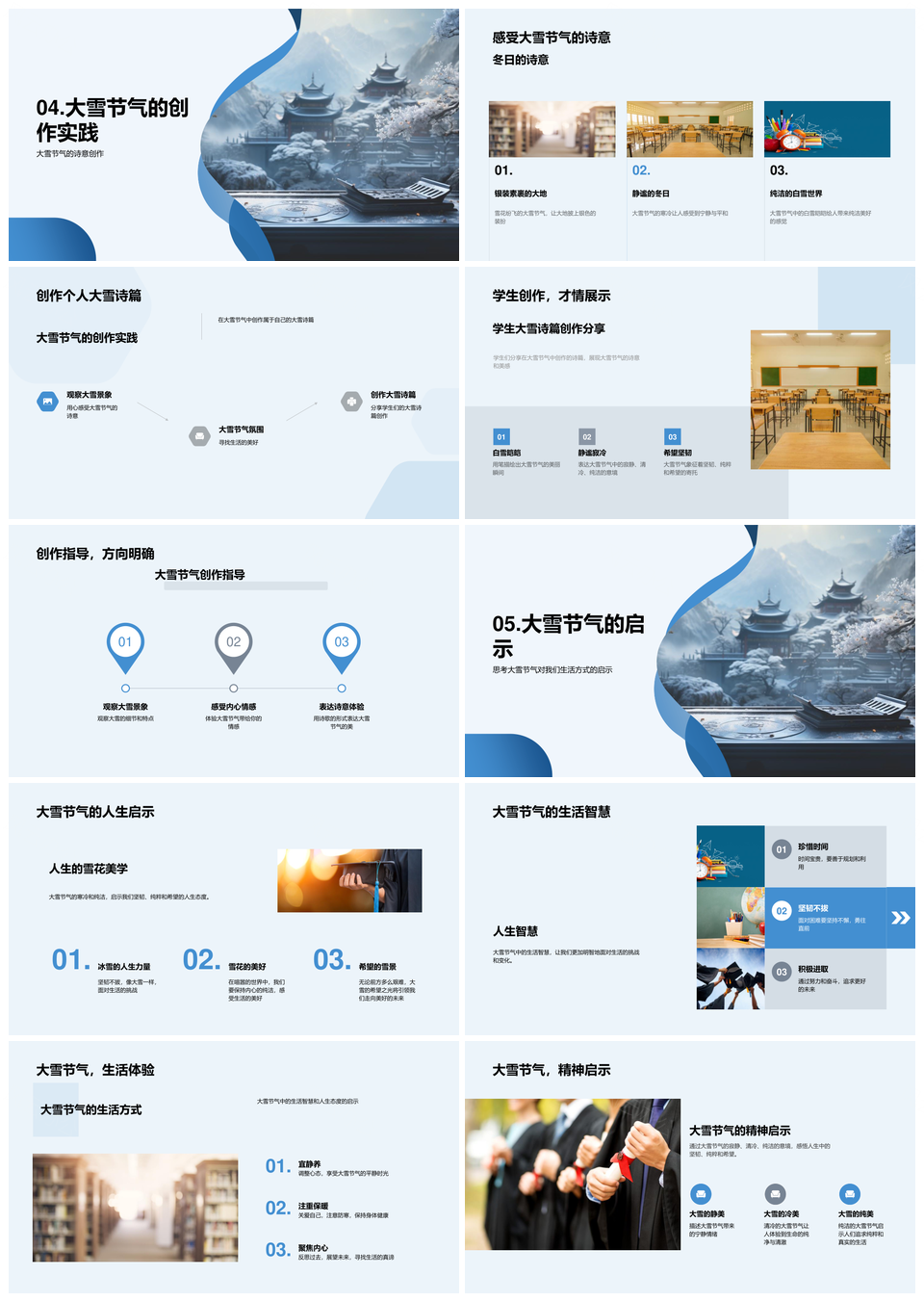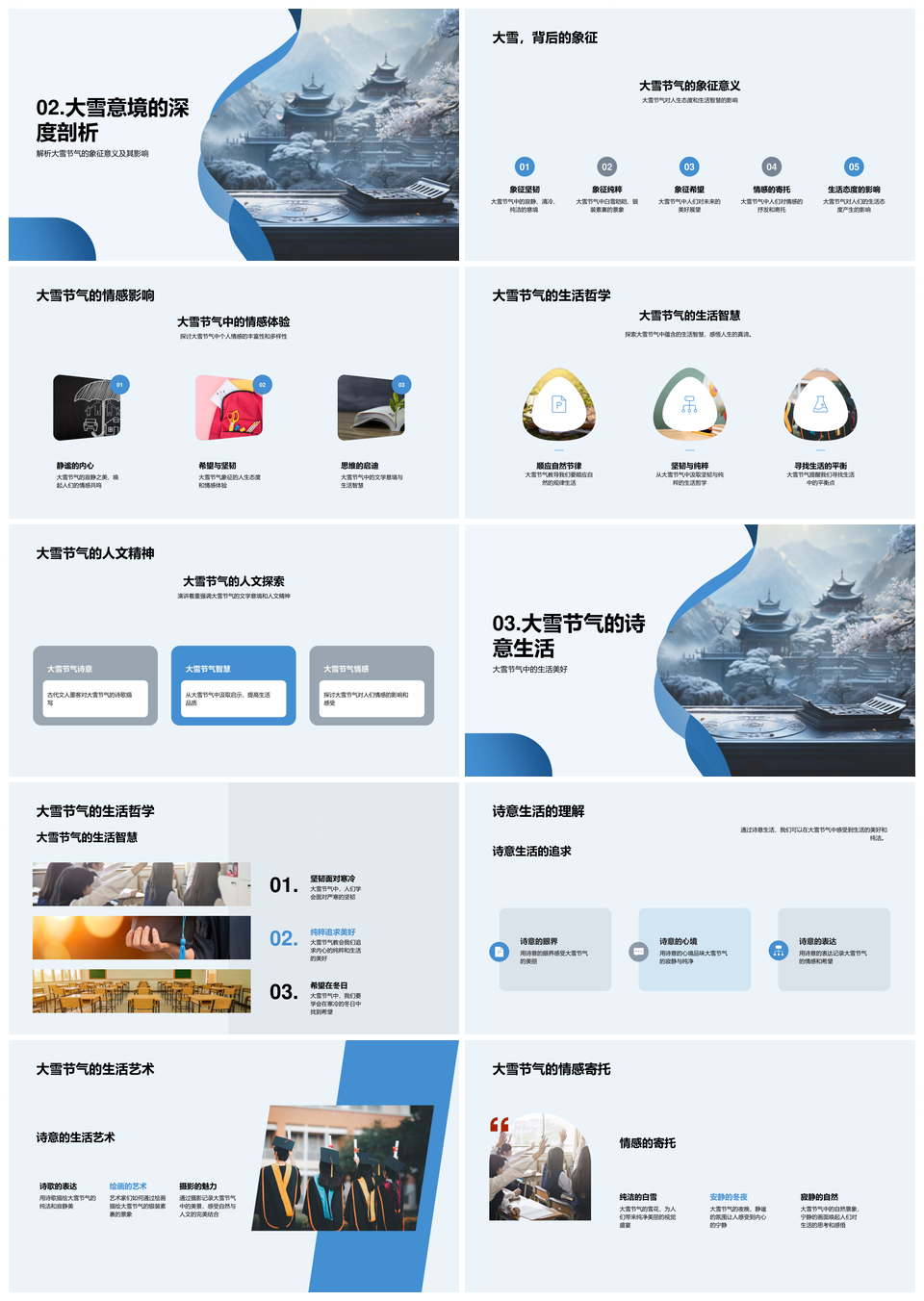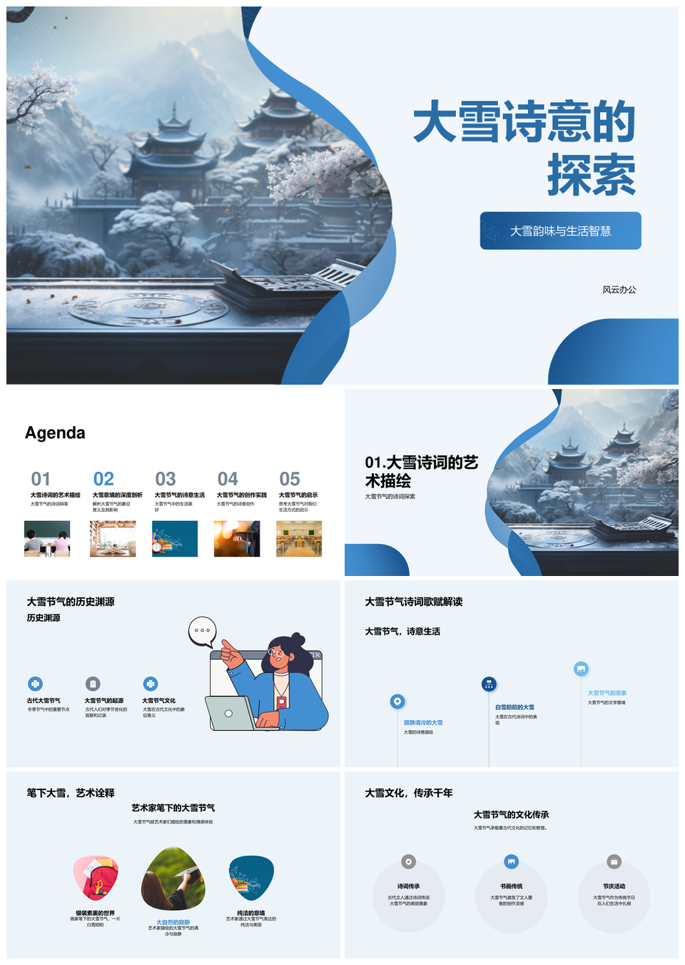 这是一张大雪诗意生活哲思与艺境PPT模板,包含大雪、诗意、生活、哲思、艺境等主题内容,也可用作大雪诗意生活哲思、诗意生活哲思艺境、大雪诗意生活艺境、大雪诗意生活、诗意生活哲思、诗意生活艺境、生活哲思艺境、大雪诗意、诗意生活、生活哲思、哲思艺境、大雪艺境、大雪哲思、诗意艺境、生活艺境等PPT场景使用。 风云办公提供的大雪诗意生活哲思与艺境PPT模板,下载格式为pptx,一共28页,作品中文字及图均可以修改和编辑,图片更改请在作品中右键图片并更换,文字修改请直接点击文字进行修改。