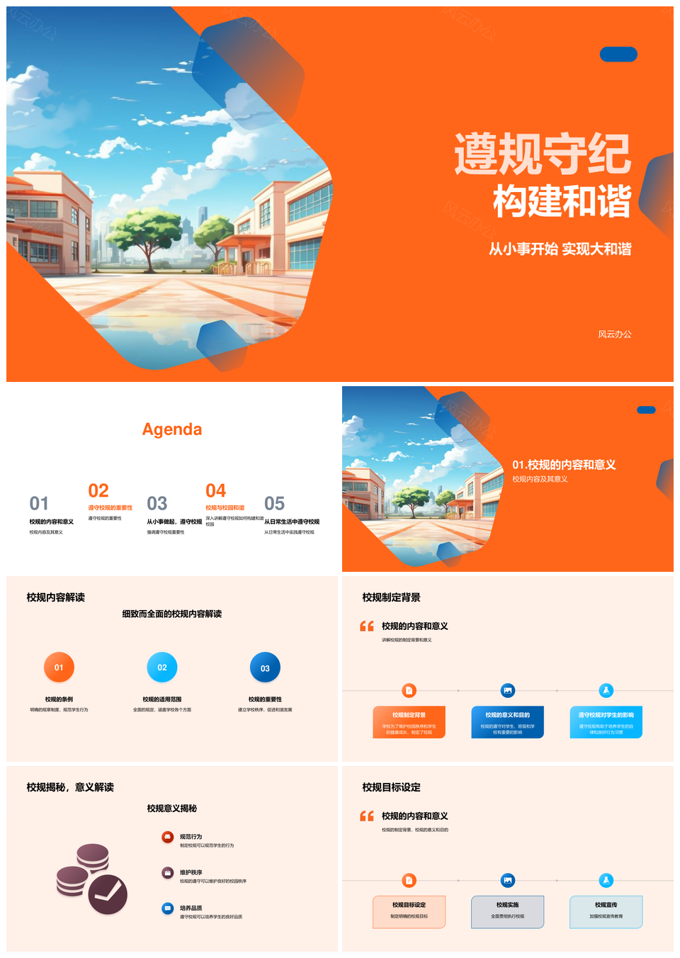 风云办公提供的守校规重法治共建和谐校园PPT模板,下载格式为pptx,一共33页,作品中文字及图均可以修改和编辑,图片更改请在作品中右键图片并更换,文字修改请直接点击文字进行修改。