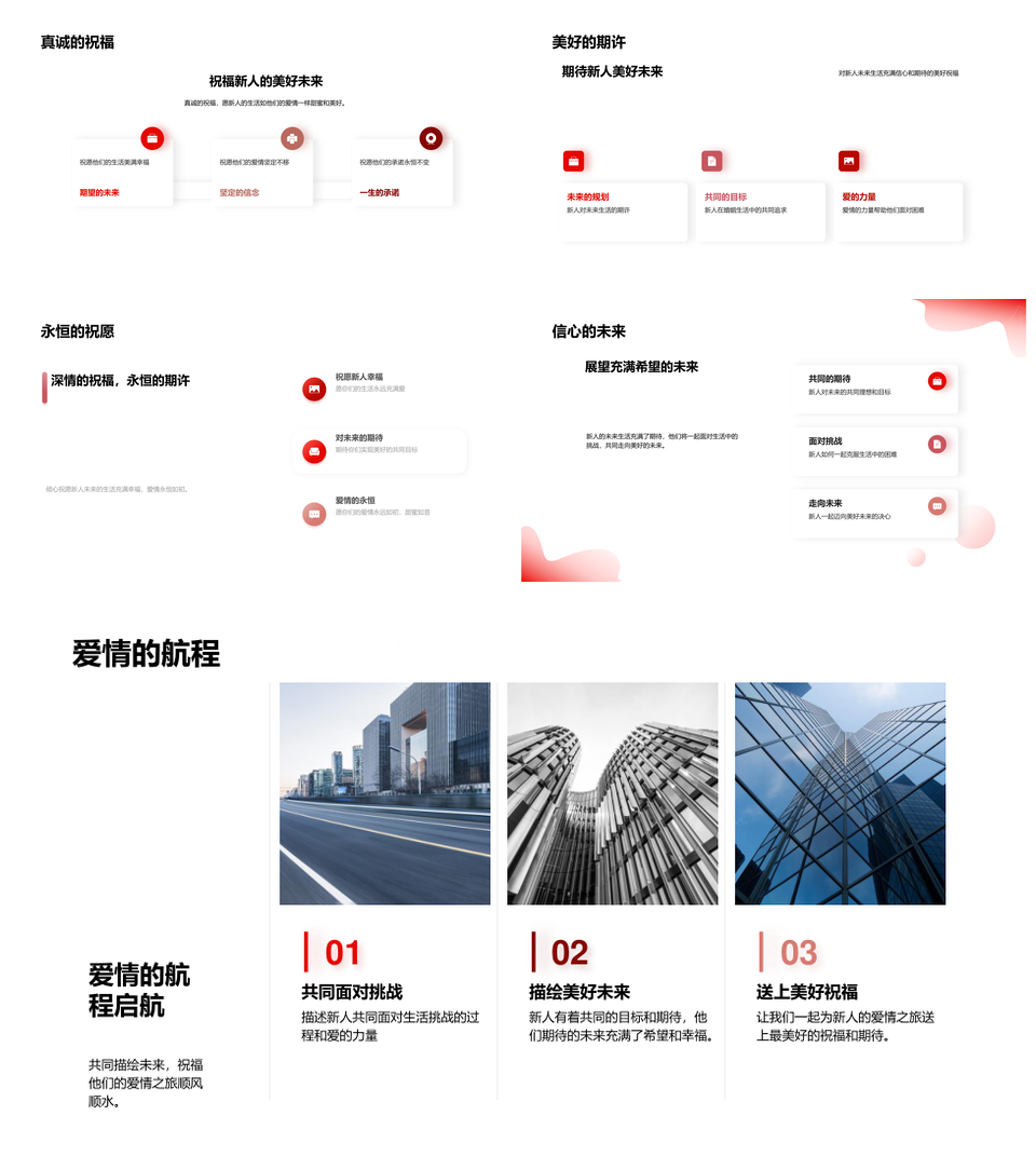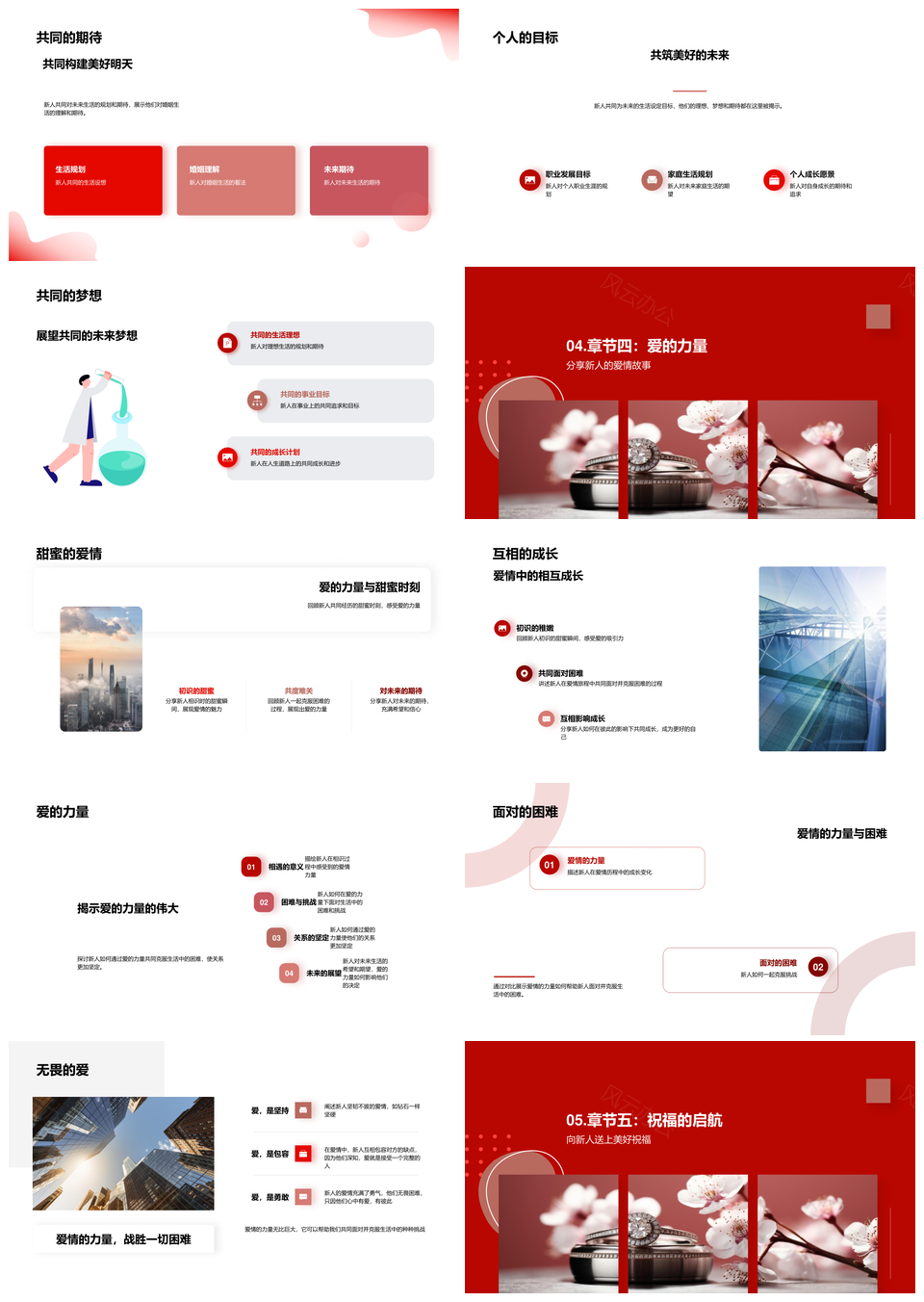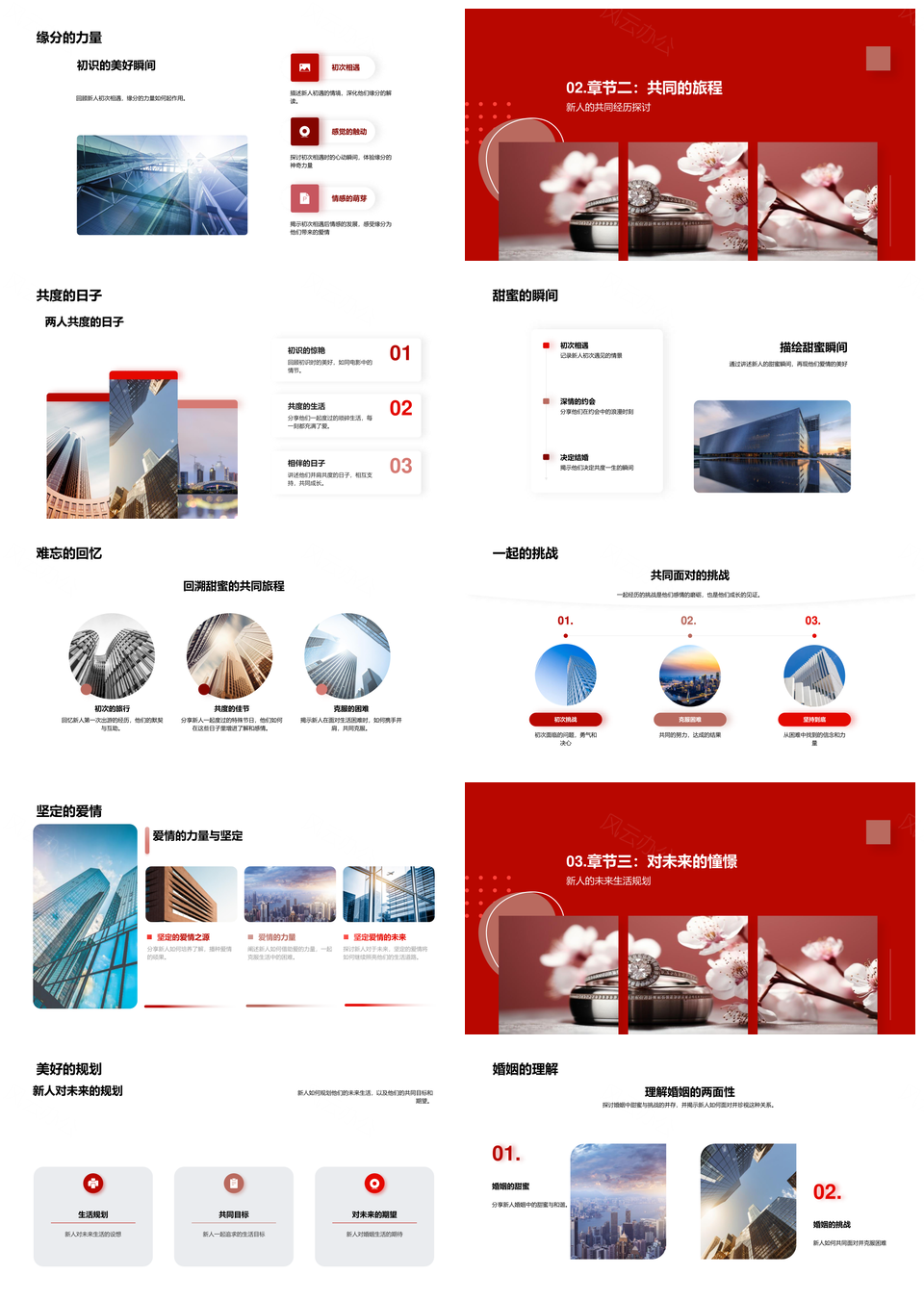 这是一张缘起爱河新人初遇相知共度甜蜜婚戒见证未来PPT模板,包含缘起、爱河、新人、初遇、相知、共度、甜蜜、婚戒、见证、未来等主题内容,也可用作缘起爱河新人初遇、爱河新人初遇相知、新人初遇相知共度、初遇相知共度甜蜜、相知共度甜蜜婚戒、共度甜蜜婚戒见证、甜蜜婚戒见证未来、缘起爱河新人、爱河新人初遇、新人初遇相知、初遇相知共度、相知共度甜蜜、共度甜蜜婚戒、甜蜜婚戒见证、婚戒见证未来等PPT场景使用。 风云办公提供的缘起爱河新人初遇相知共度甜蜜婚戒见证未来PPT模板,下载格式为pptx,一共33页,作品中文字及图均可以修改和编辑,图片更改请在作品中右键图片并更换,文字修改请直接点击文字进行修改。