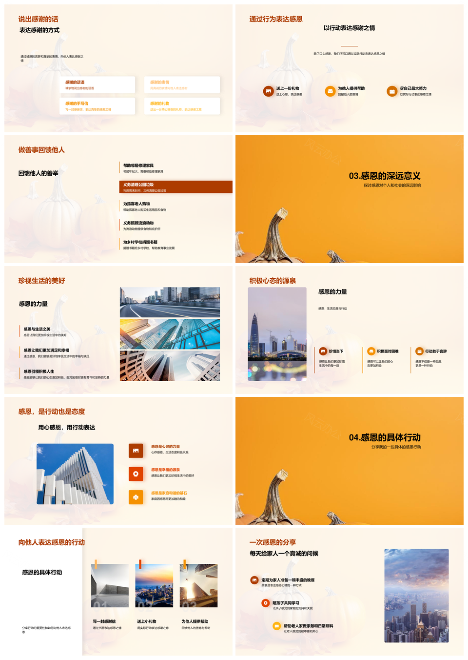 风云办公提供的家和感恩行善秋叶暖心馈美好PPT模板,下载格式为pptx,一共23页,作品中文字及图均可以修改和编辑,图片更改请在作品中右键图片并更换,文字修改请直接点击文字进行修改。