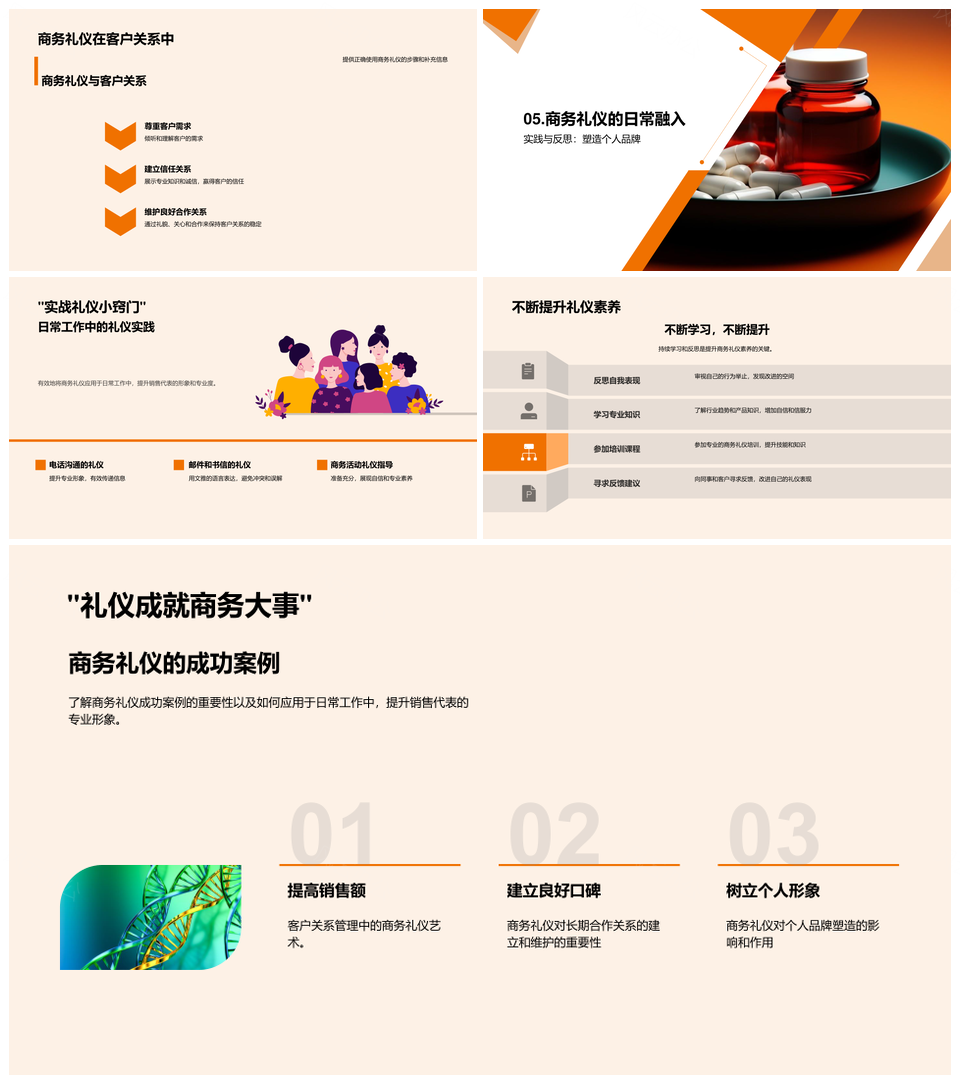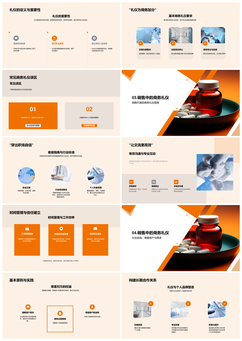 风云办公提供的药品销售代表商务礼仪与市场沟通指南PPT模板,下载格式为pptx,一共23页,作品中文字及图均可以修改和编辑,图片更改请在作品中右键图片并更换,文字修改请直接点击文字进行修改。