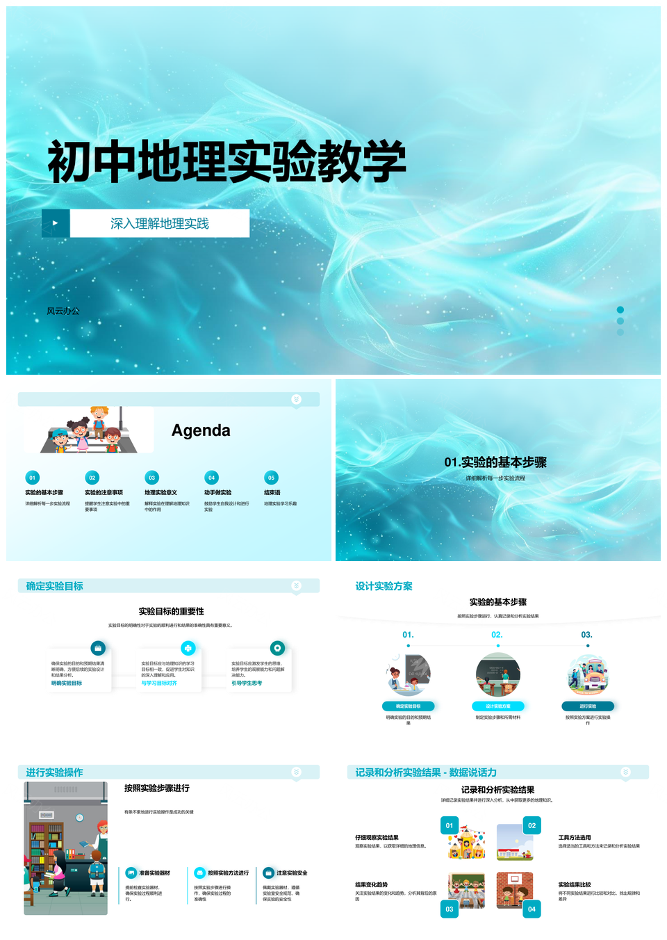 风云办公提供的初中地理实验教学实践设计与安全分析PPT模板,下载格式为pptx,一共21页,作品中文字及图均可以修改和编辑,图片更改请在作品中右键图片并更换,文字修改请直接点击文字进行修改。