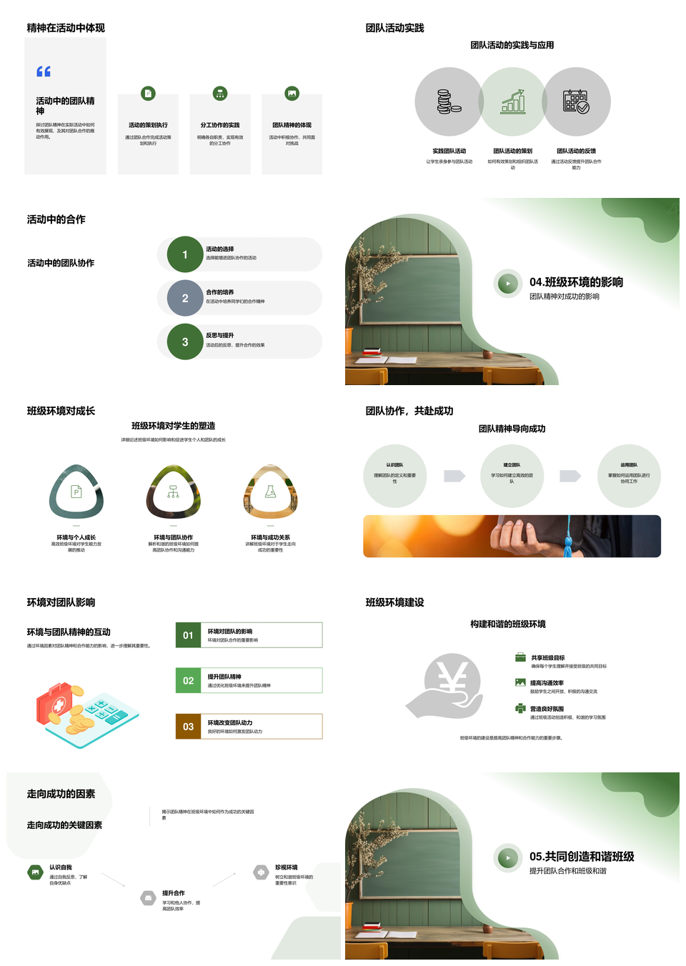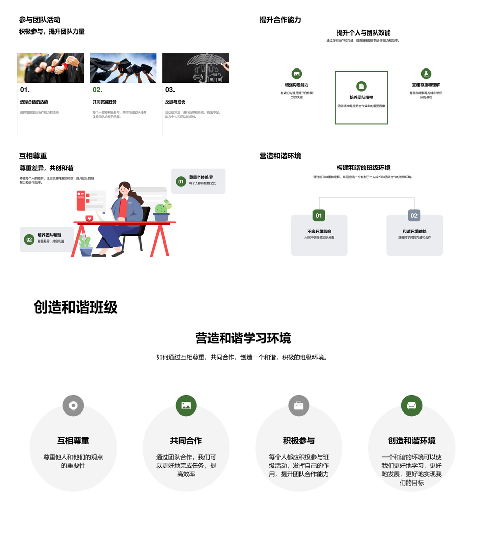 这是一张和谐班级团队协作共促成长PPT模板,包含和谐班级、团队协作、共促成长等主题内容,也可用作和谐班级团队协作、班级团队协作共促、团队协作共促成长、和谐班级团队、班级团队协作、团队协作共促、协作共促成长、和谐班级、班级团队、团队协作、协作共促、共促成长、和谐团队、班级协作、团队共促等PPT场景使用。 风云办公提供的和谐班级团队协作共促成长PPT模板,下载格式为pptx,一共33页,作品中文字及图均可以修改和编辑,图片更改请在作品中右键图片并更换,文字修改请直接点击文字进行修改。
