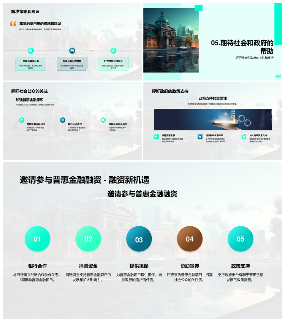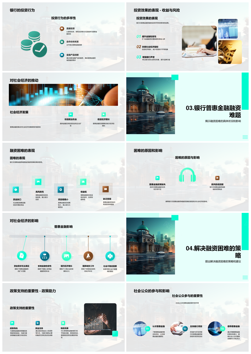 普惠金融融资难题破解银行政策社会参与助发展PPT模板推荐