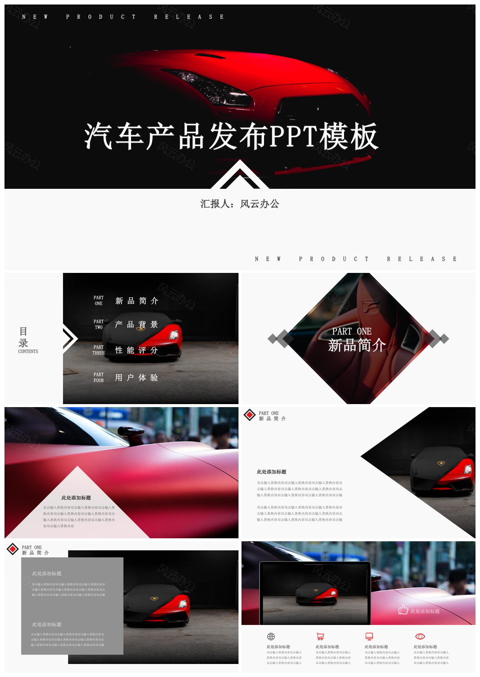 这是一张汽车产品发布PPT模板,包含汽车、产品、发布等主题内容,也可用作汽车、产品、发布 汽车产品发布、汽车产品、产品发布、汽车发布等PPT场景使用。 风云办公提供的汽车产品发布PPT模板,下载格式为pptx,一共20页,作品中文字及图均可以修改和编辑,图片更改请在作品中右键图片并更换,文字修改请直接点击文字进行修改。