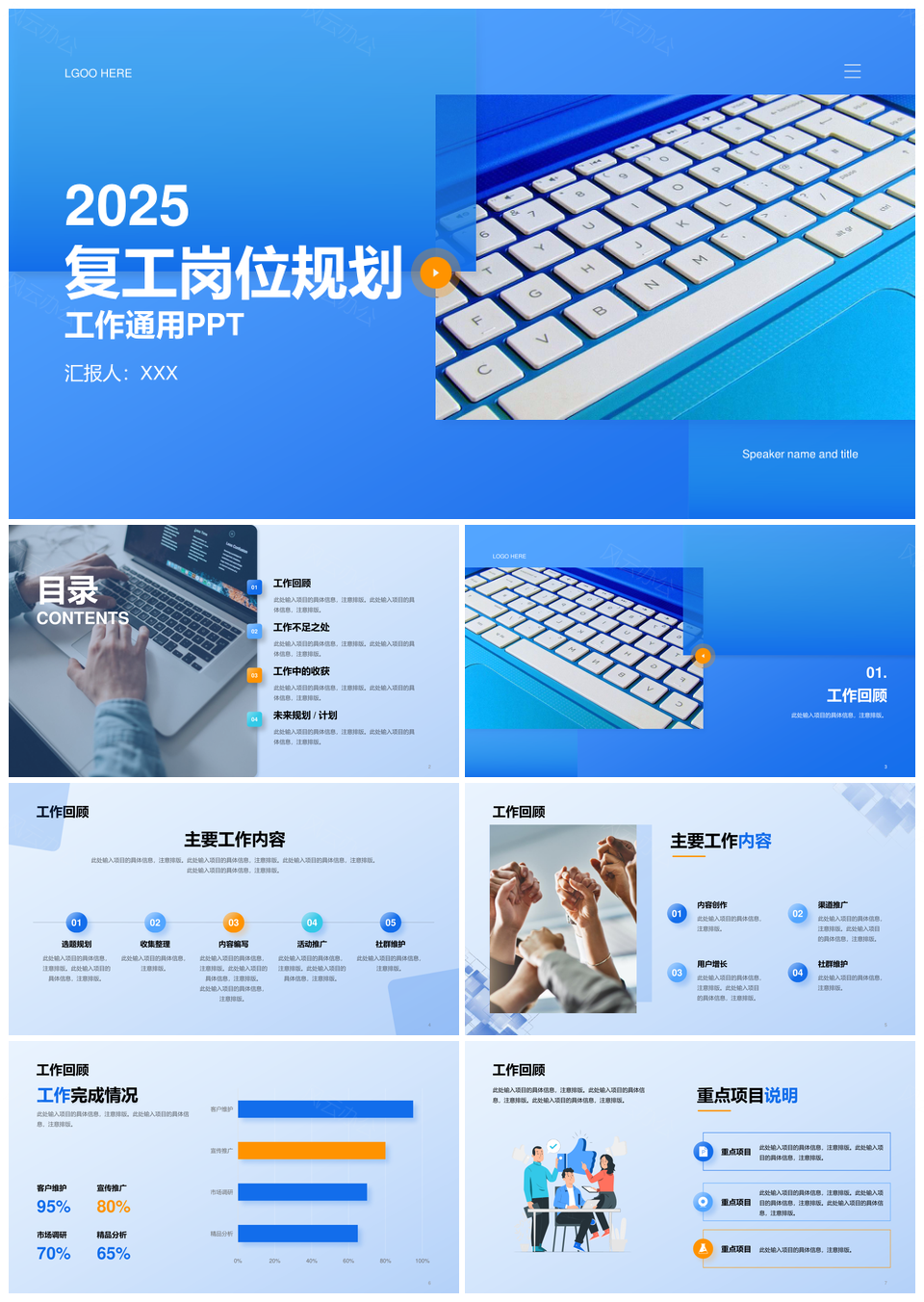 这是一张2025蓝色商务科技互联网简约毛玻璃通用复工规划PPT模板,包含2025、蓝色、商务、科技、互联网、简约、毛玻璃、复工、规划等主题内容,也可用作2025蓝色商务科技互联网、蓝色商务科技互联网简约、商务科技互联网简约毛玻璃、科技互联网简约毛玻璃通用、互联网简约毛玻璃通用复工、简约毛玻璃通用复工规划、2025蓝色商务科技、蓝色商务科技互联网、商务科技互联网简约、科技互联网简约毛玻璃、互联网简约毛玻璃通用、简约毛玻璃通用复工、毛玻璃通用复工规划、商务科技互联网、科技互联网简约、互联网简约毛玻璃等PPT场景使用。 风云办公提供的2025蓝色商务科技互联网简约毛玻璃通用复工规划PPT模板,下载格式为pptx,一共25页,作品中文字及图均可以修改和编辑,图片更改请在作品中右键图片并更换,文字修改请直接点击文字进行修改。