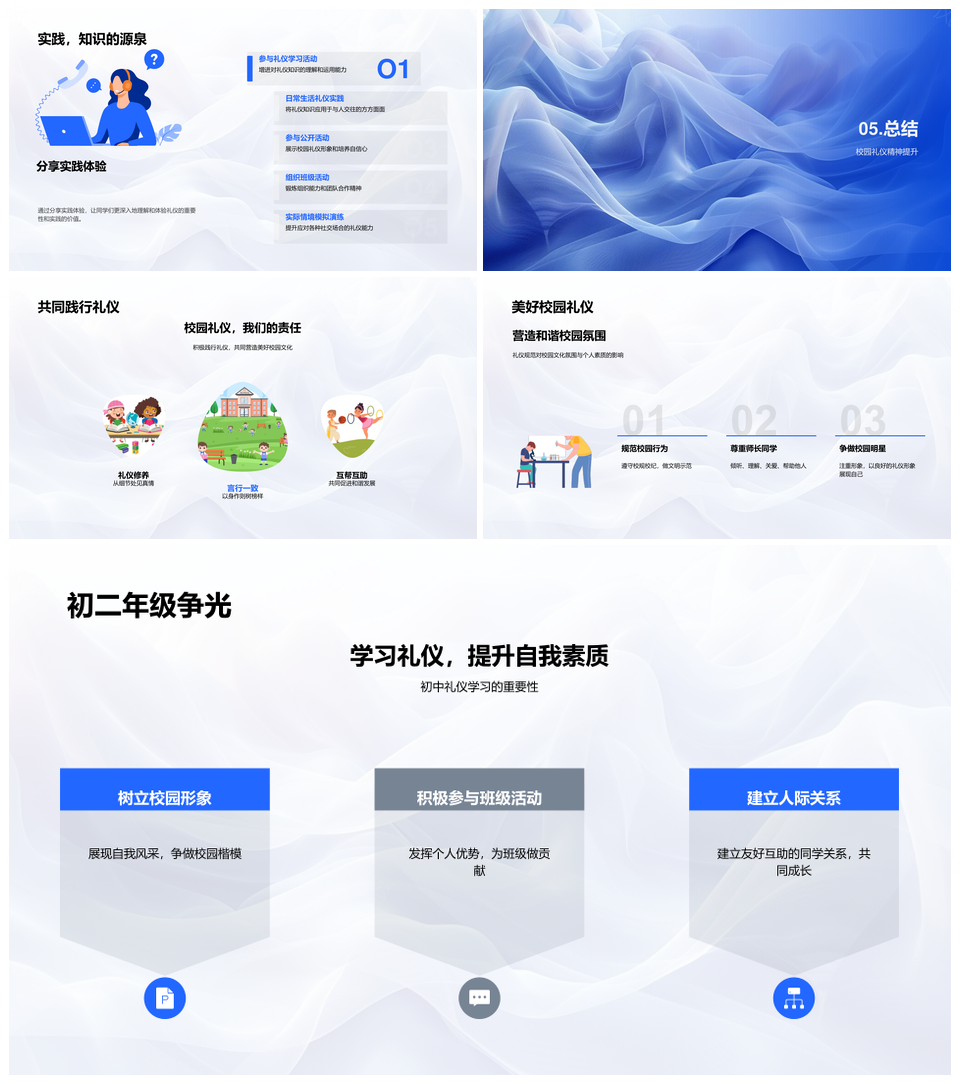 2025初二校园礼仪文化与交往纪律实践PPT模板推荐
